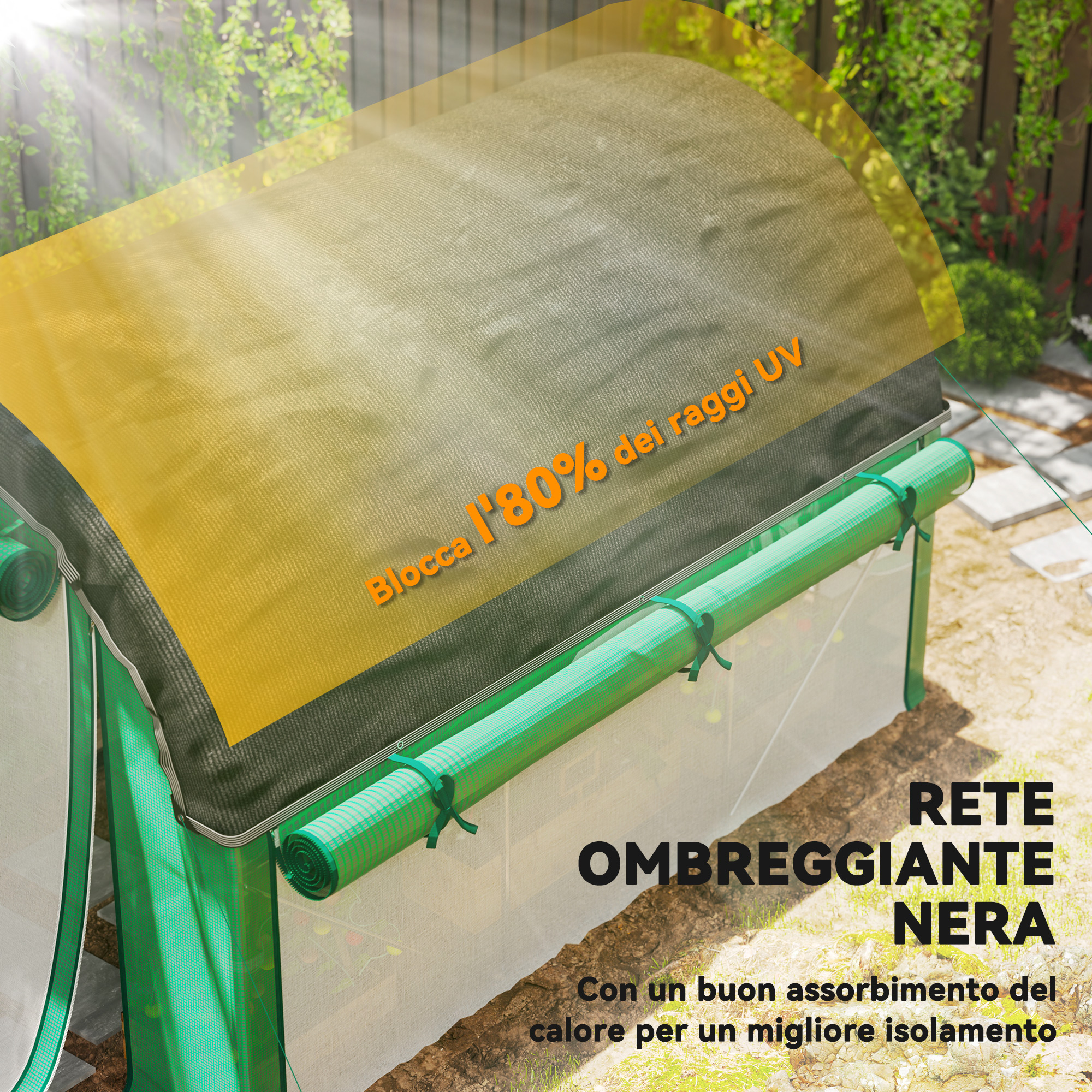 Serra a Tunnel 3×2 m con Rete Ombreggiante Extra, Finestre e Ingresso a Zip, in PE e Acciaio, Verde