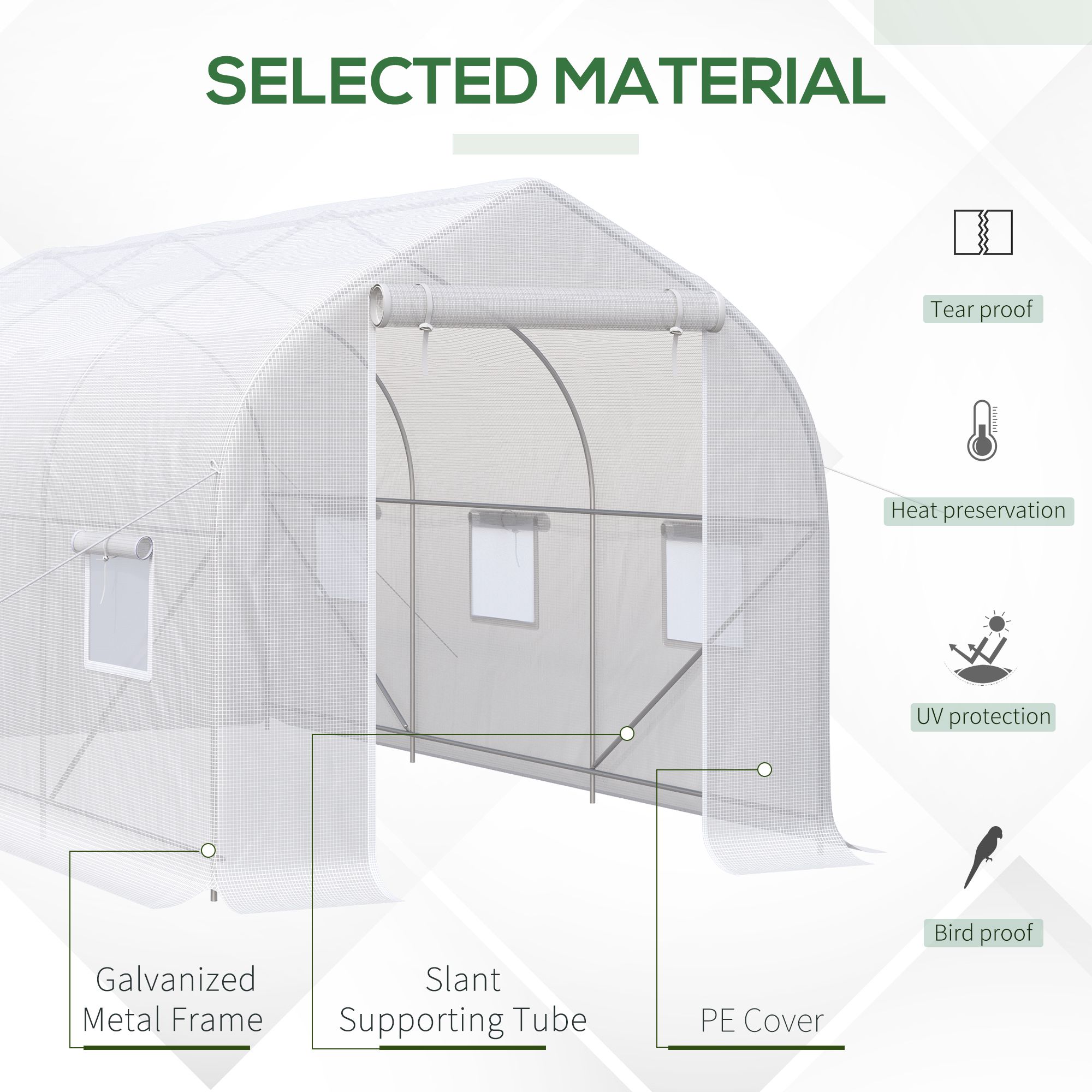- • Copertura traslucida anti UV per sfruttare la luce solare, la quale permettere alle piante di svolgere le loro funzioni