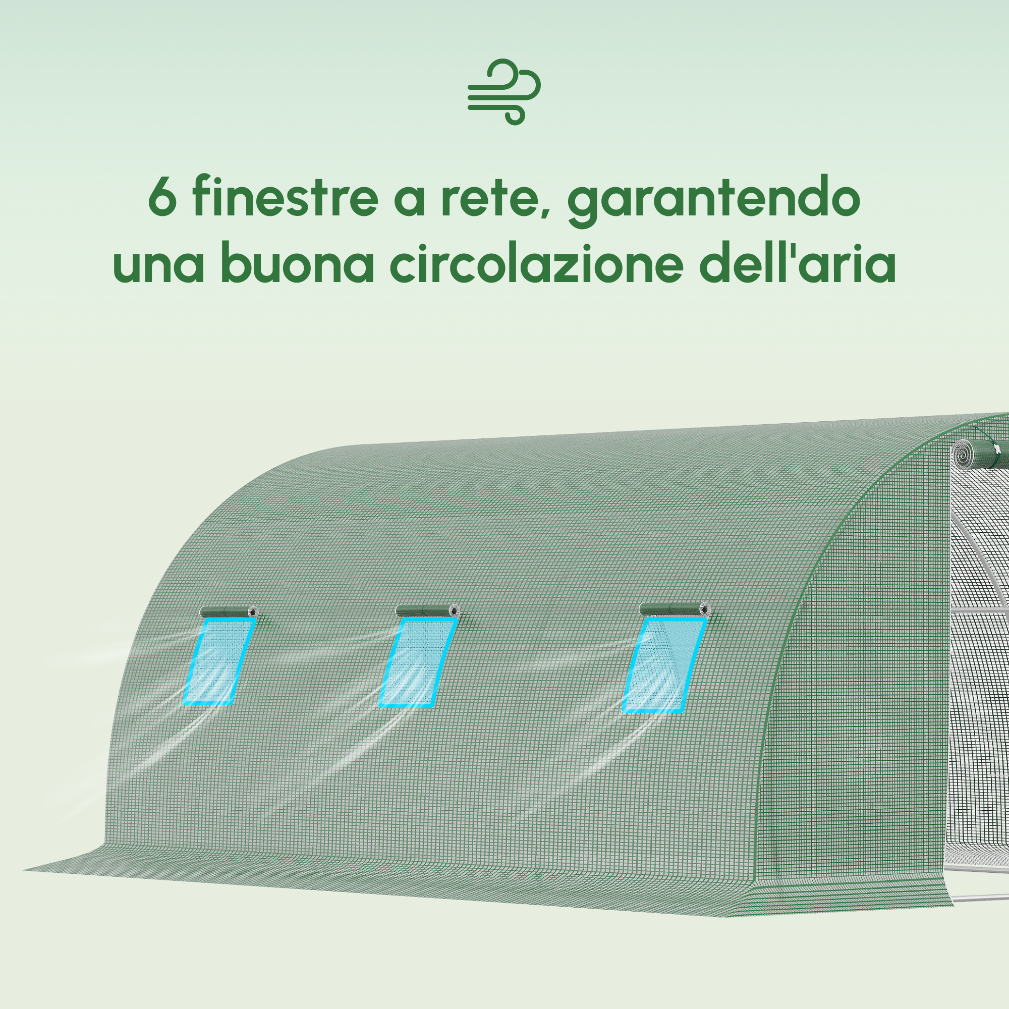 Questa serra a tunnel in polietilene di [ITALFROM HOME DESIGN] è perfetta per gli appassionati di giardinaggio che vogliono coltivare tutto l’anno! La serra in plastica offre tutta la protezione di cui le tue piante hanno bisogno per crescere, sfruttando al meglio lo spazio a disposizione, Il telaio in acciaio e la copertura in PE mantengono le tue piante e verdure sicure e al caldo, Le finestre con rete interna assicurano la ventilazione e la porta avvolgibile fornisce un facile accesso all’interno,