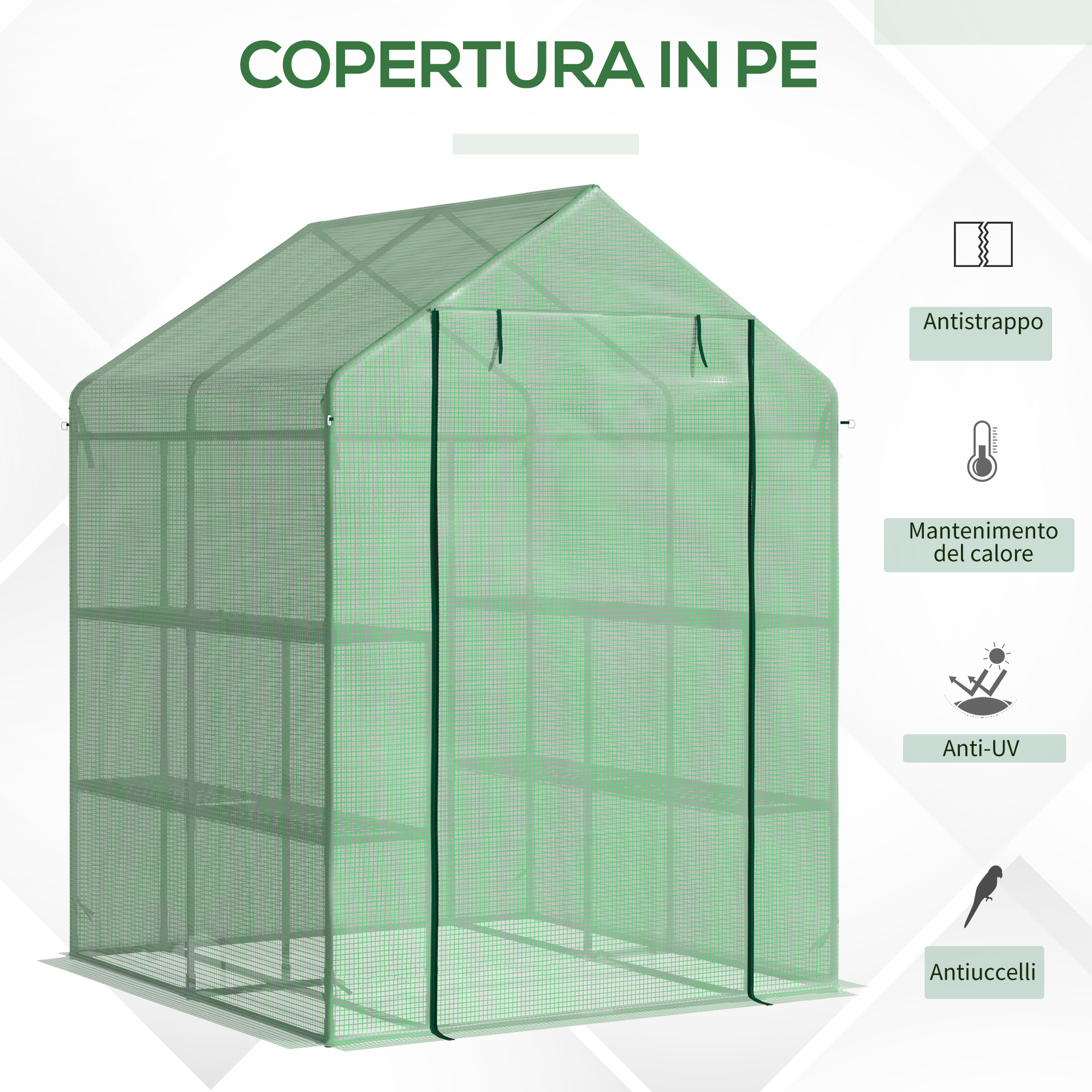 Serra da Giardino con Scaffali, Copertura in PE e Porta Avvolgibile, 143x138x190 cm, Verde