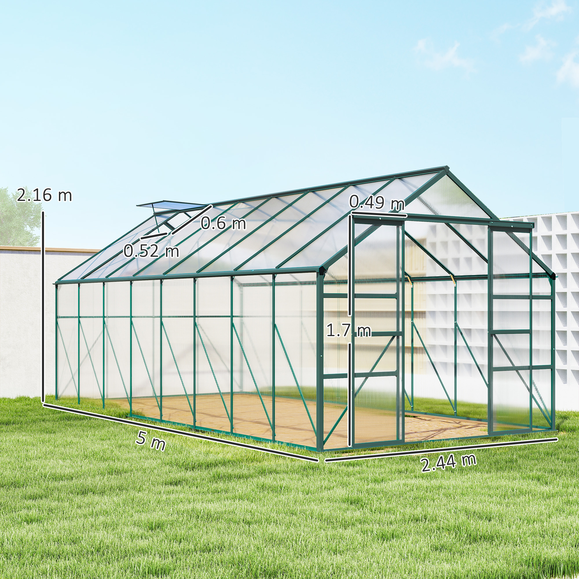Serra da Giardino in Policarbonato, Metallo e Alluminio, Anti-UV e Antivento, 244x5x216cm, Verde