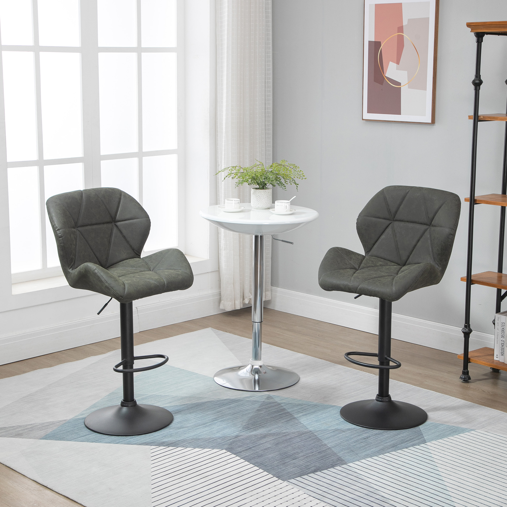 Set 2 Sgabelli Alti da Cucina Moderni con Schienale e Poggiapiedi, da Bar di Design con Base Rotonda, in Similpelle, Verde | Aosom Italy