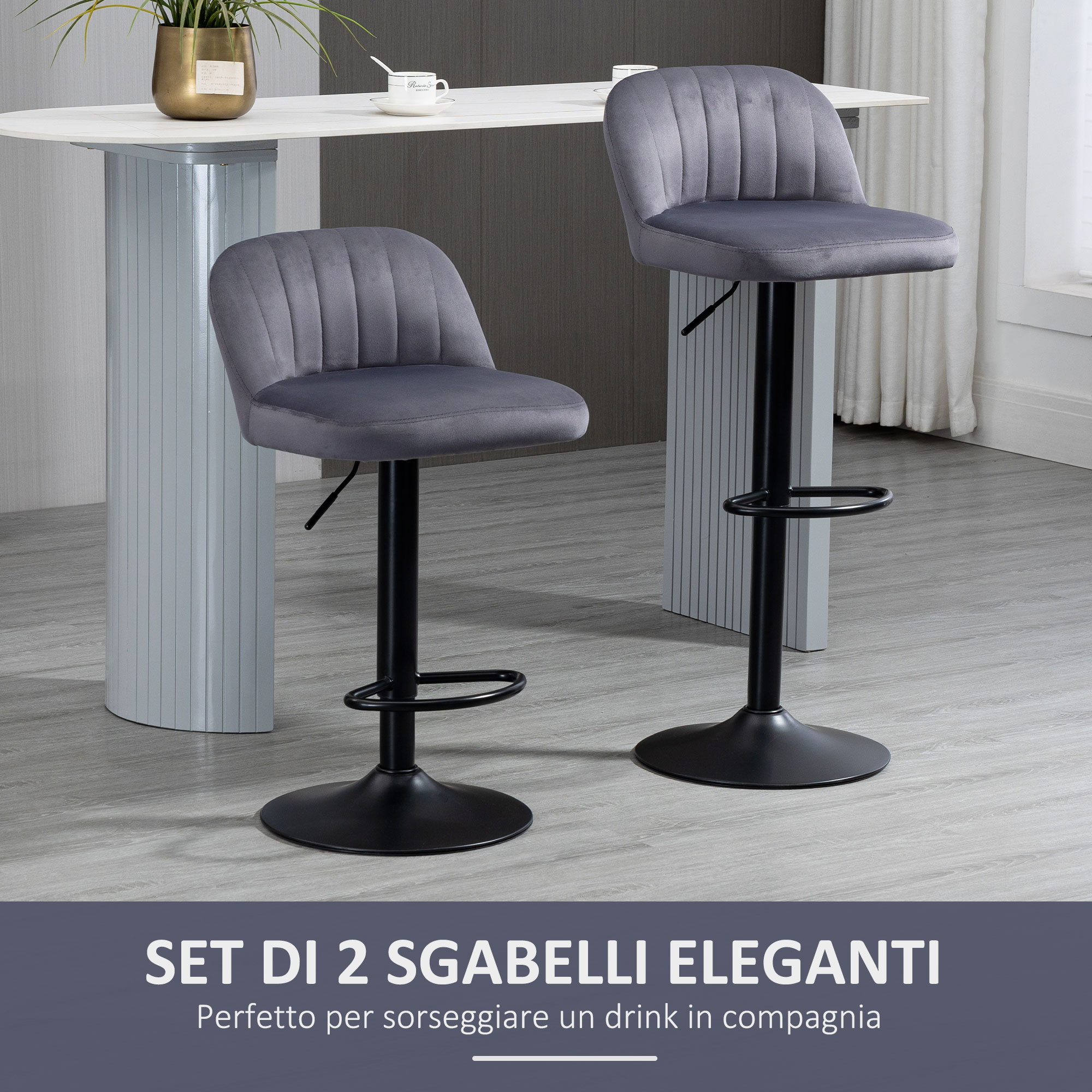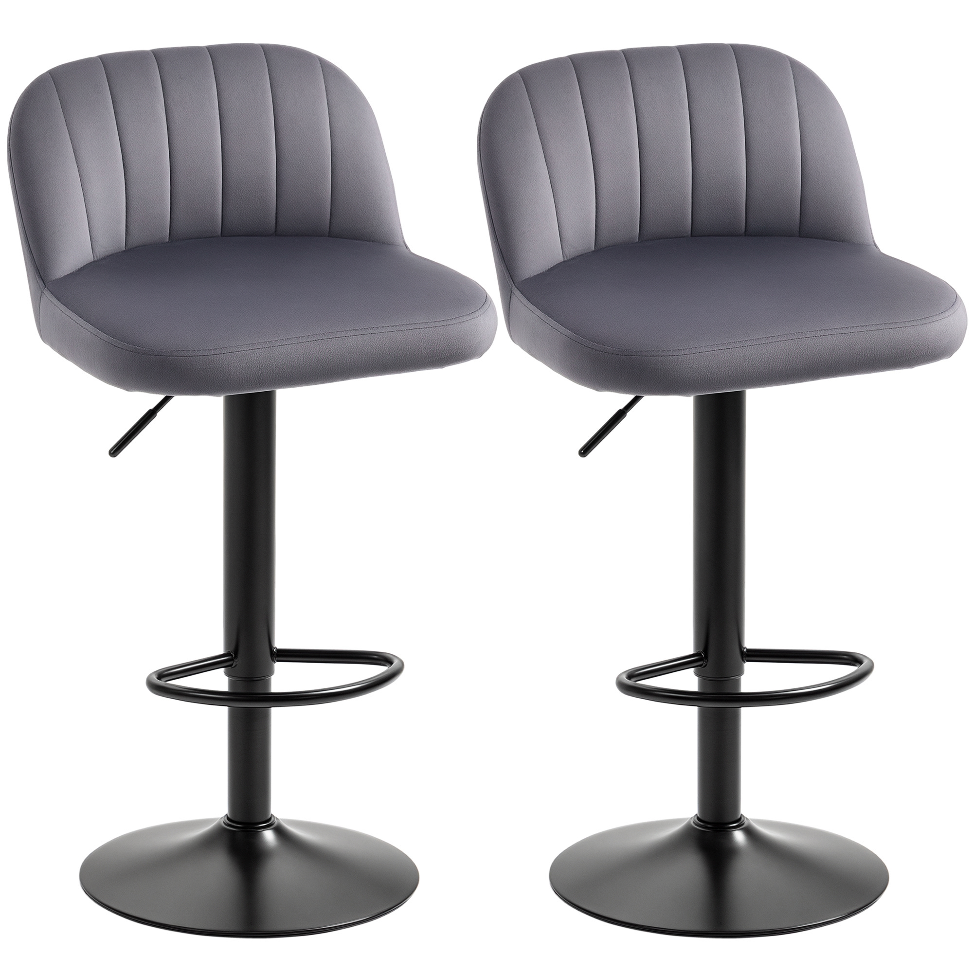 Set 2 Sgabelli Alti da cucina Moderno con Schienale e Poggiapiedi, Girevoli con Altezza Regolabile, imbottitura velluto, Grigio | Aosom Italy