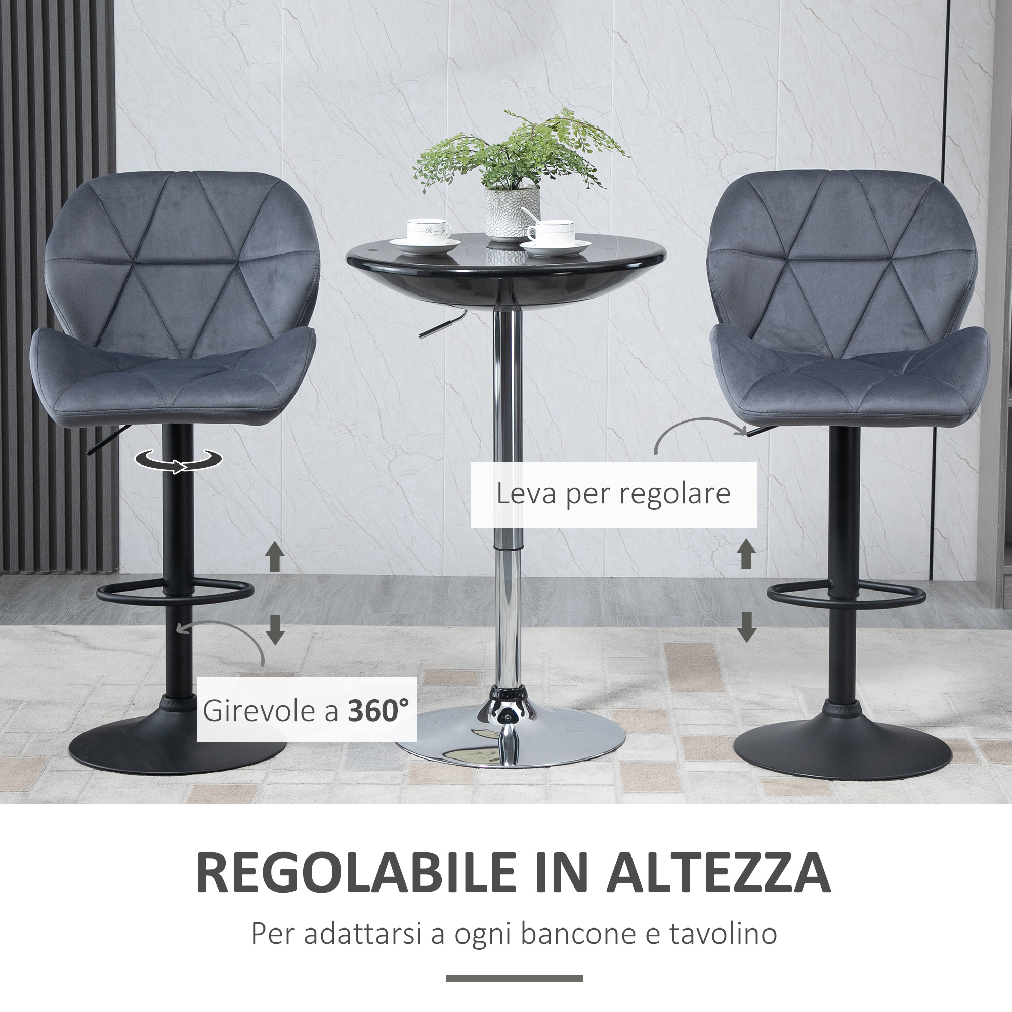 Set 2 Sgabelli da Bar con Altezza Regolabile Base in Metallo Seduta in Velluto, Sgabelli Cucina Alti Girevole con Schienale e Poggiapiedi, 51,5×57,5×93-114,5cm, Grigio