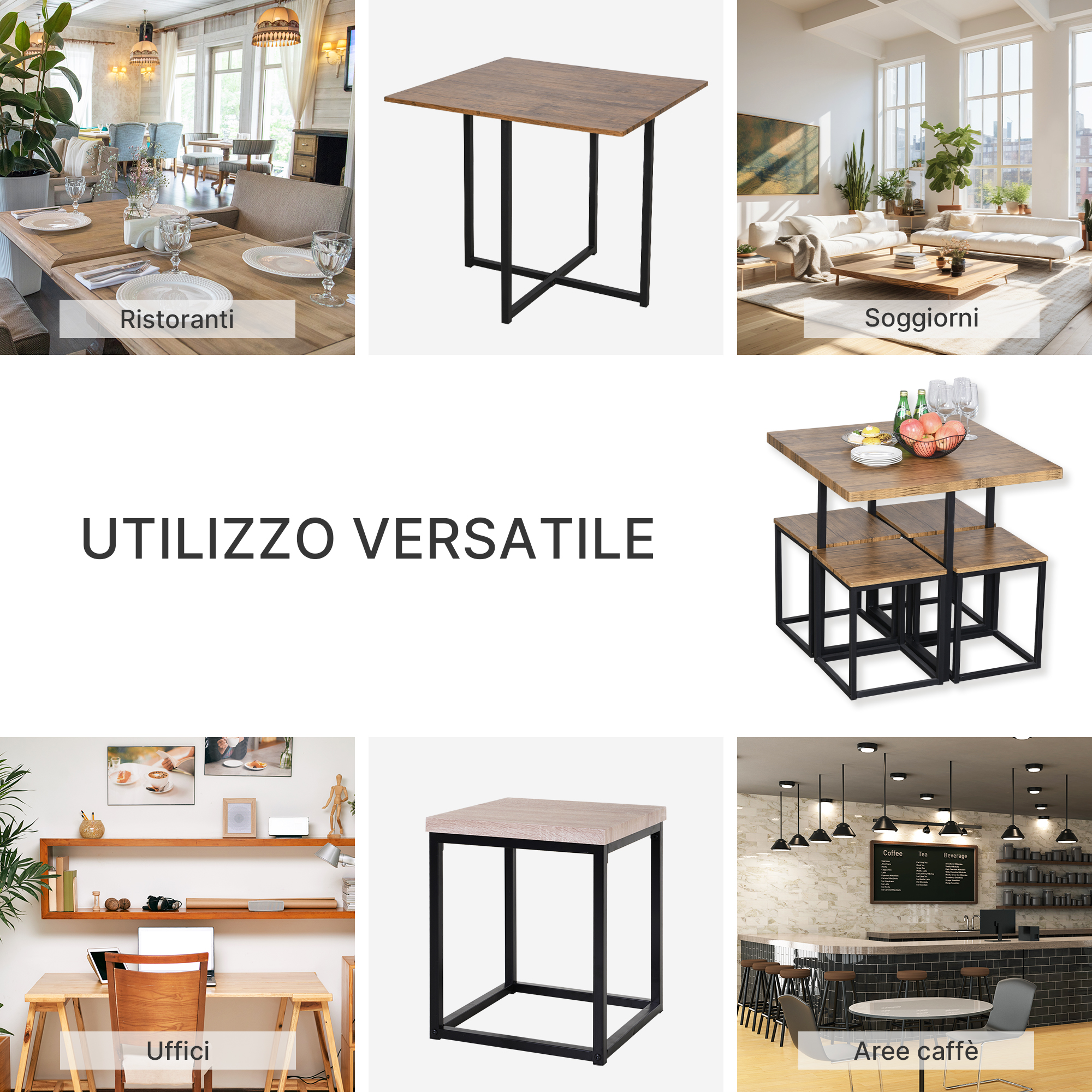 Set 5 Pezzi Sedie Tavolo Sala da Pranzo Moderne in Stile Industriale, Legno e Metallo, Nero e Color Legno