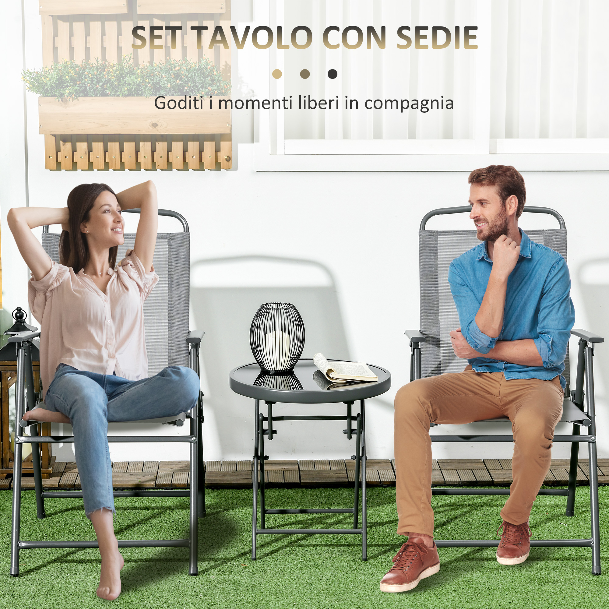 - • Set tavolino e sedie da giardino facile da riporre quando non è in uso