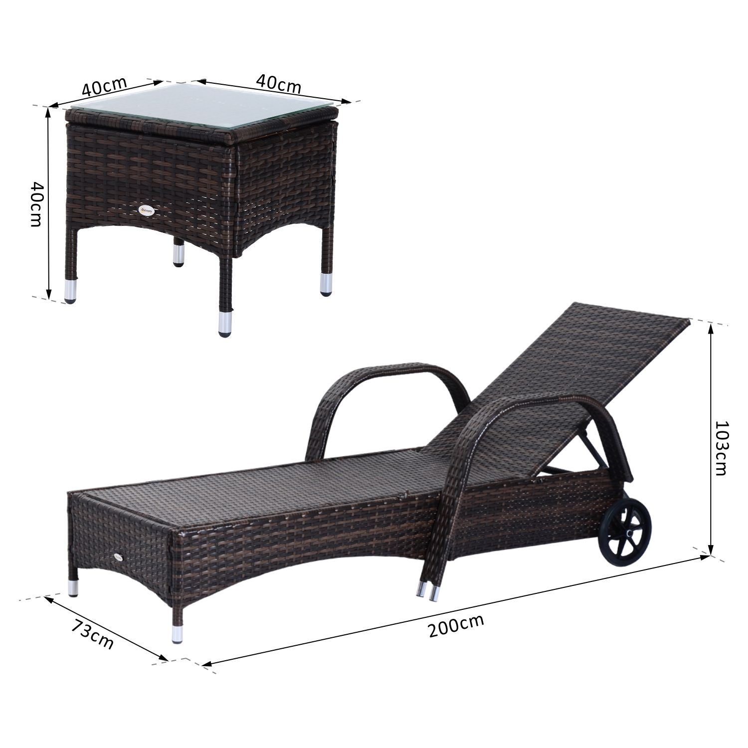 - • Dimensione sedia a sdraio: 2 x 73 x 103 cm
