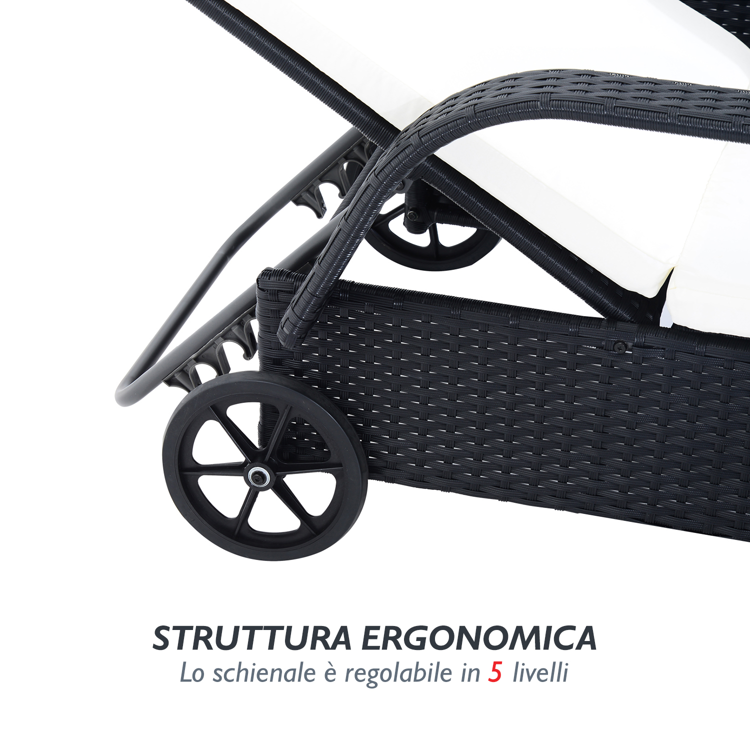 Questo set da 2 sdraio da giardino [ITALFROM HOME DESIGN] in rattan PE ti aiuterà a trovare il comfort ideale negli spazi aperti, Il set è dotato anche di un tavolino basso quadrato per appoggiare i tuoi oggetti, È possibile regolare l’altezza dello schienale su 5 livelli, in modo da passare agilmente da una posizione piatta a una più reclinata, Grazie alle rotelle incluse, la nostra sedia può essere spostata facilmente, La confezione include anche cuscini e poggiatesta,