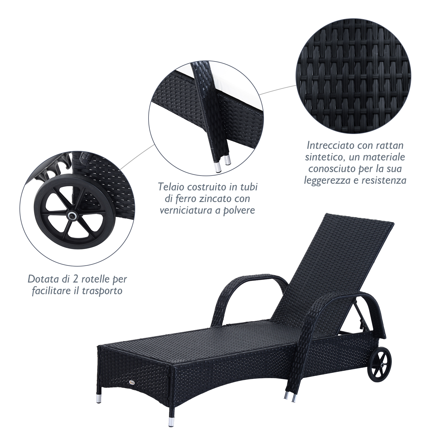 Set da Giardino con 2 Sedie a Sdraio con Schienale Reclinabile e Tavolino Basso in Rattan PE, Nero