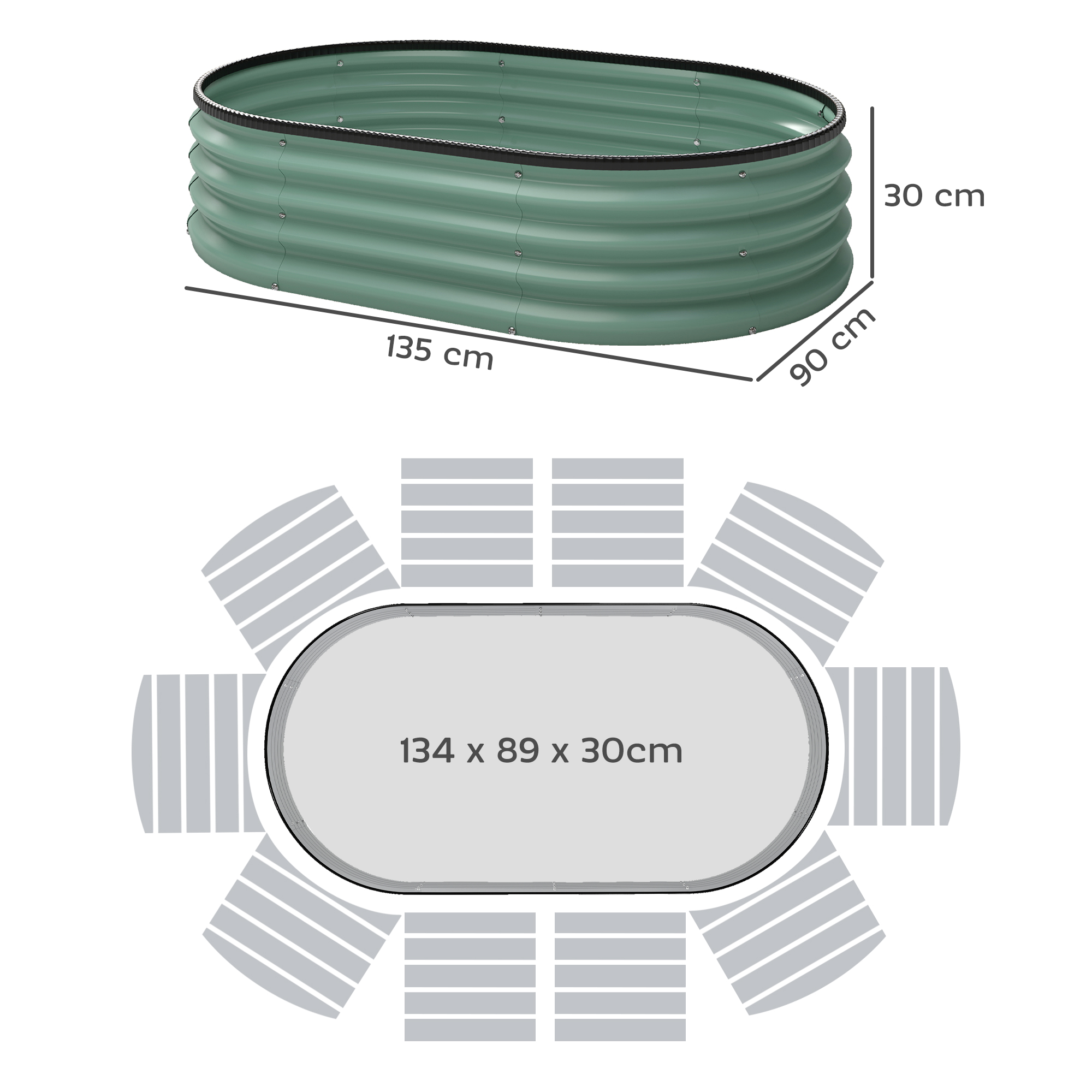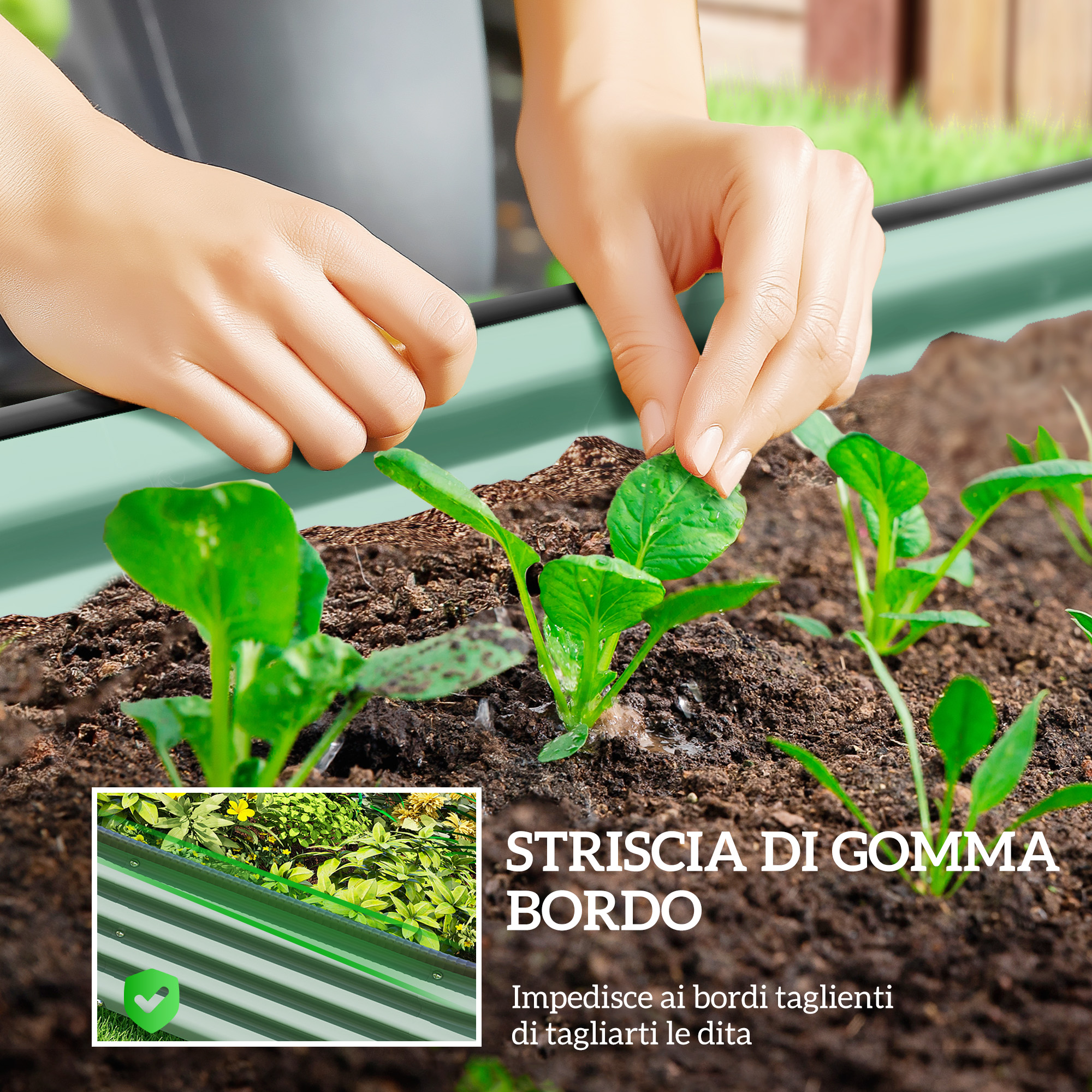 Set di 2 Aiuole Rialzate in Metallo Galvanizzato con Bordo in Gomma e Design Modulare, 135x90x30 cm Verde