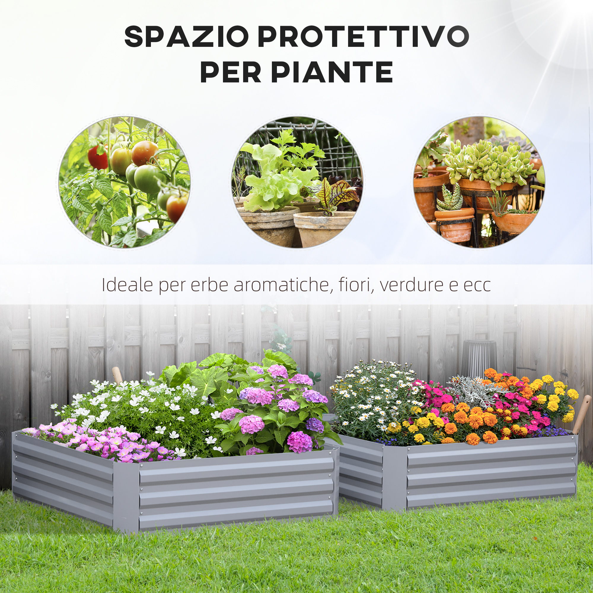 • • Set di due letti rialzati da giardino in acciaio da 1 x 1 cm
