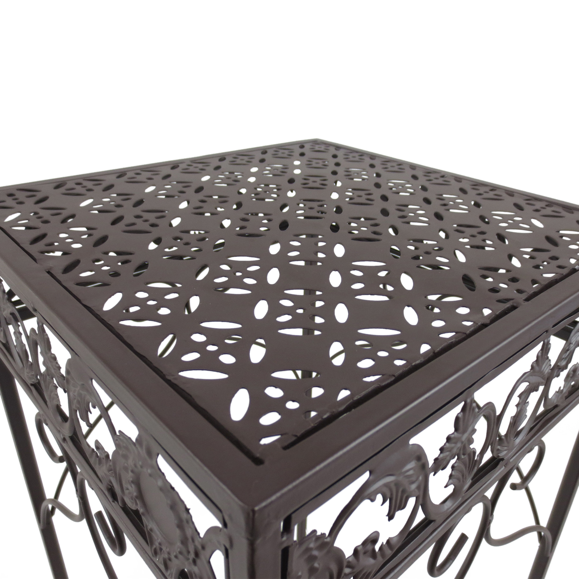 Set di 3 Pezzi Sgabelli Supporto per Piante Classico in Ferro, MARRONE