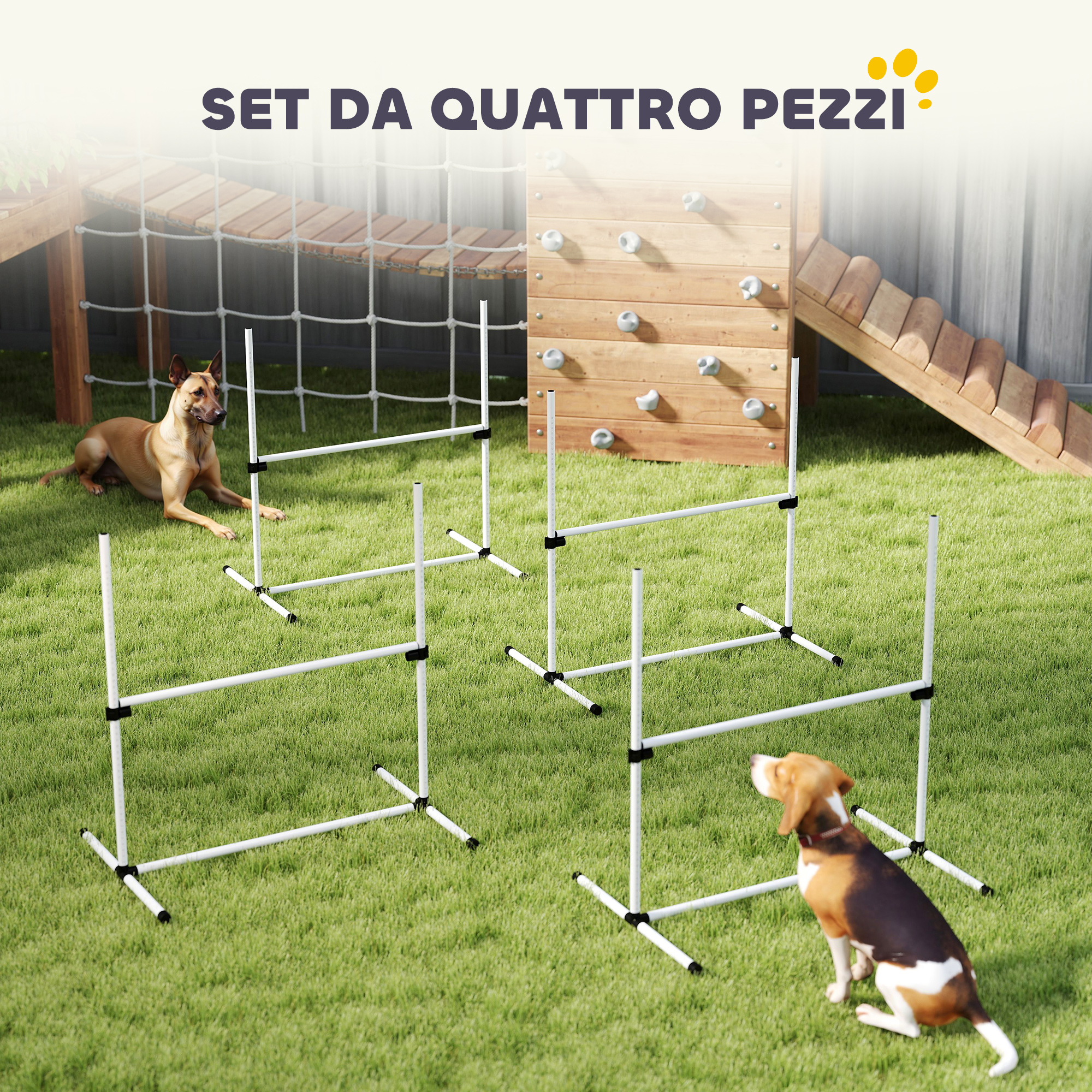 Set di 4 Ostacoli Agility Dog per Addestramento Cani ad Altezza Regolabile con Borsa da Trasporto Inclusa, 99x65x94cm, Bianco
