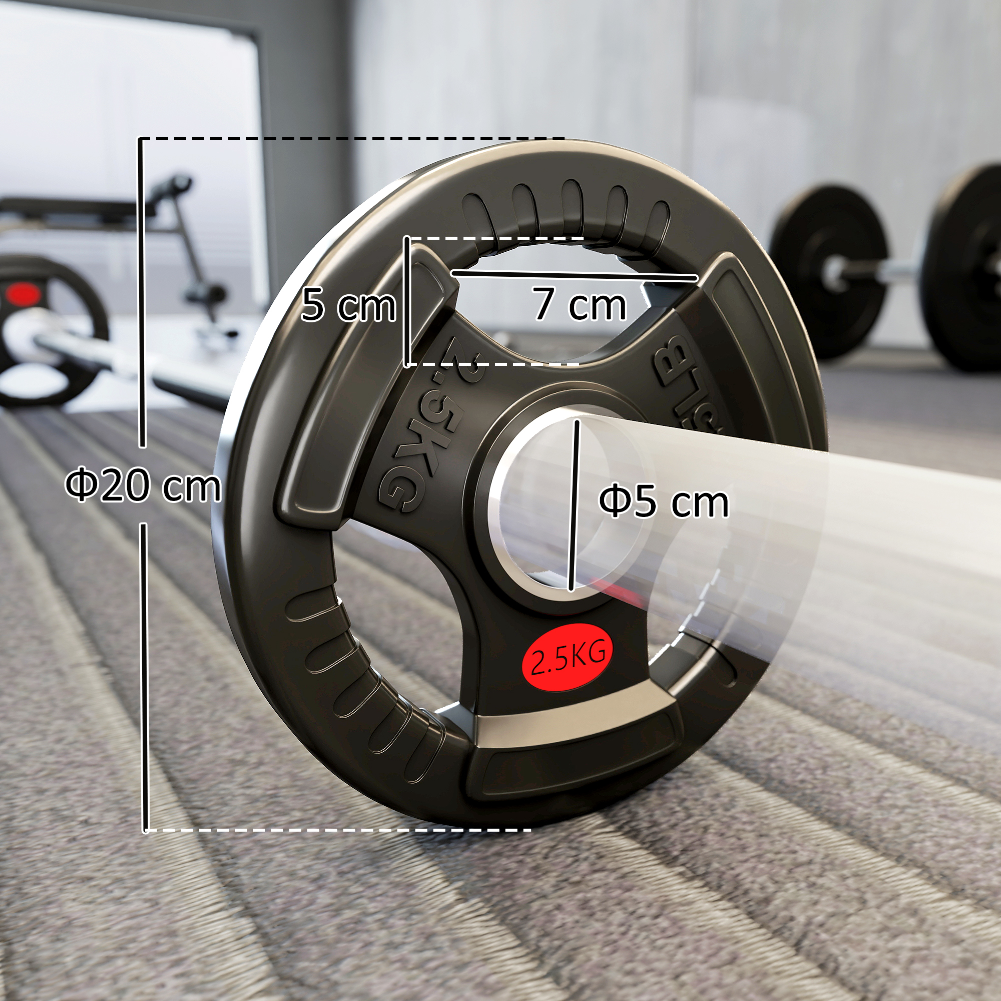 Set di Dischi Pesi 2×2,5 kg con Foro da 5 cm e 3 Impugnature, Acciaio con Rivestimento in Plastica, Nero