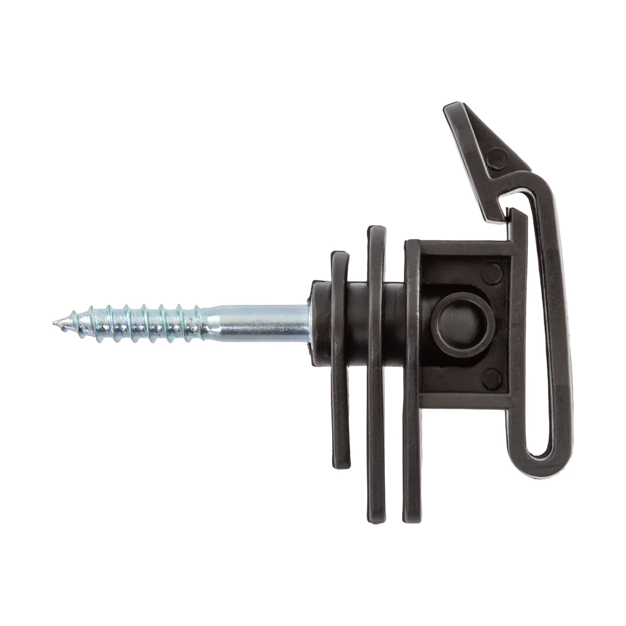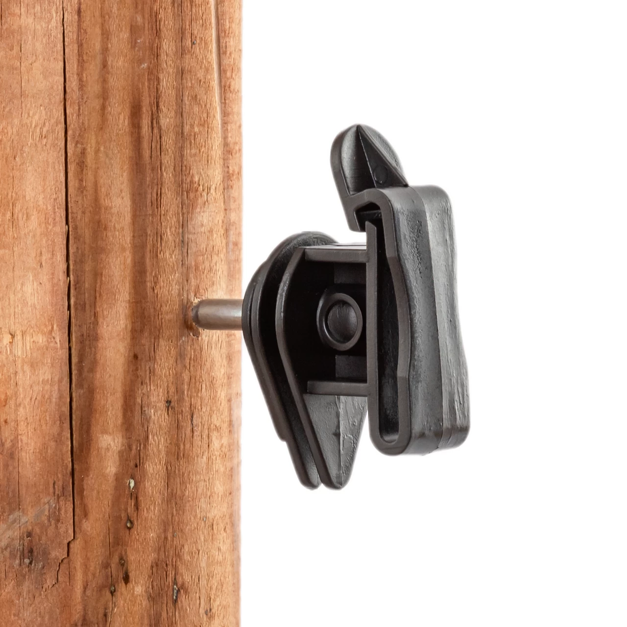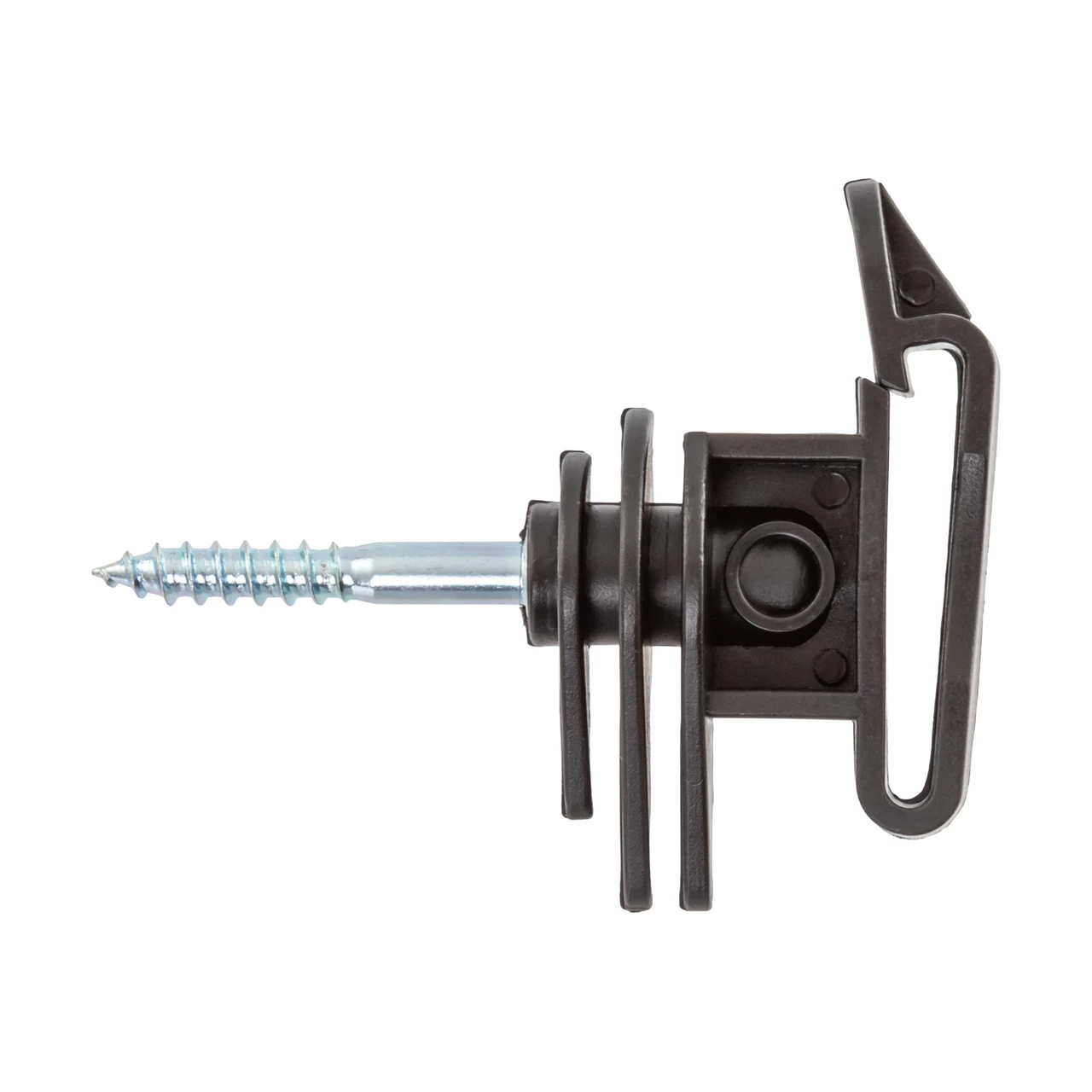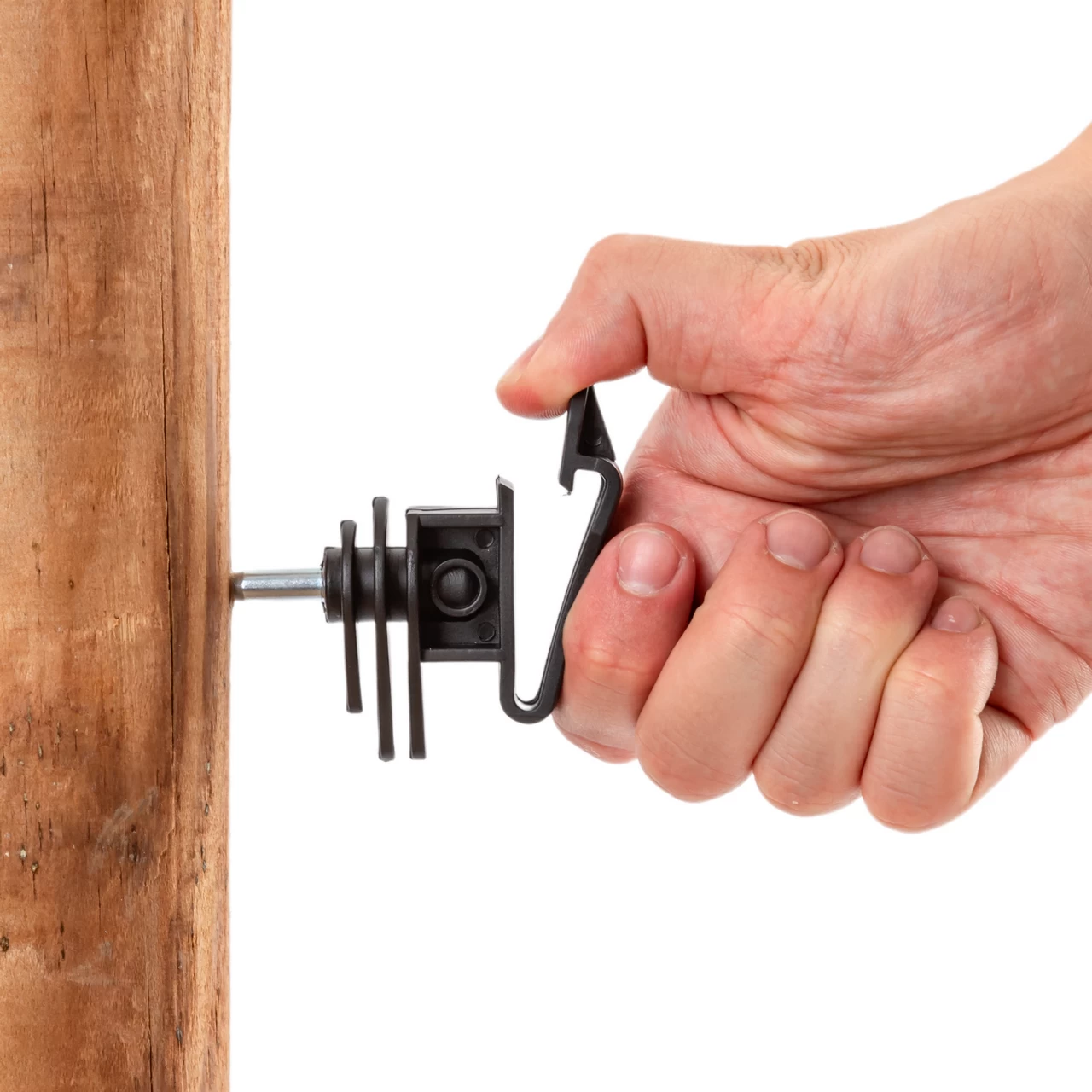 Adatto per nastri con larghezza di 10-40 mm e filo con diametro massimo di 3 milimetri. Materiale in plastica, buon isolante, resistente ai raggi UV, con vite da legno galvanizzato. Grazie alla particolare forma, l’acqua scende facilmente da esso, impedendo così la perdita elettrica del sistema durante la pioggia.