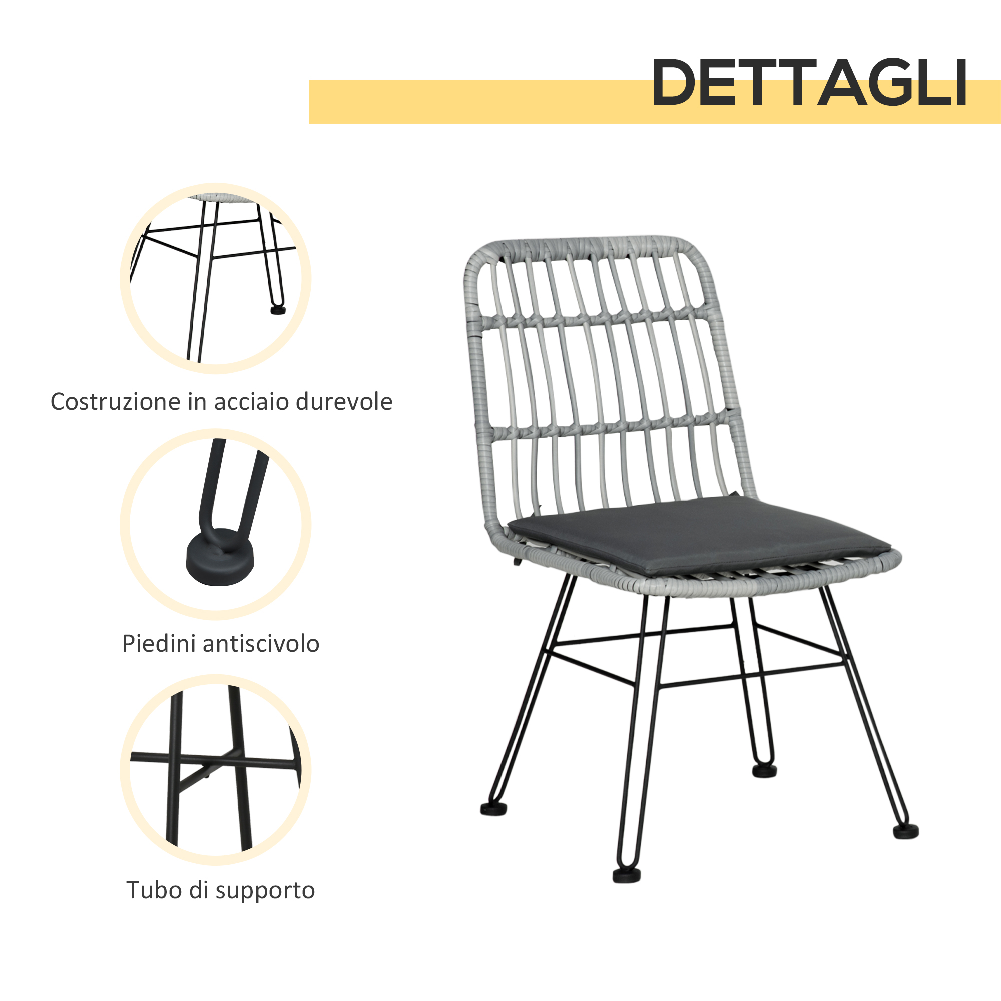 Set Mobili da Giardino 3 Pezzi con Tavolino e Sedie in Rattan PE, Poilestere e Acciaio per Esterni, Grigio
