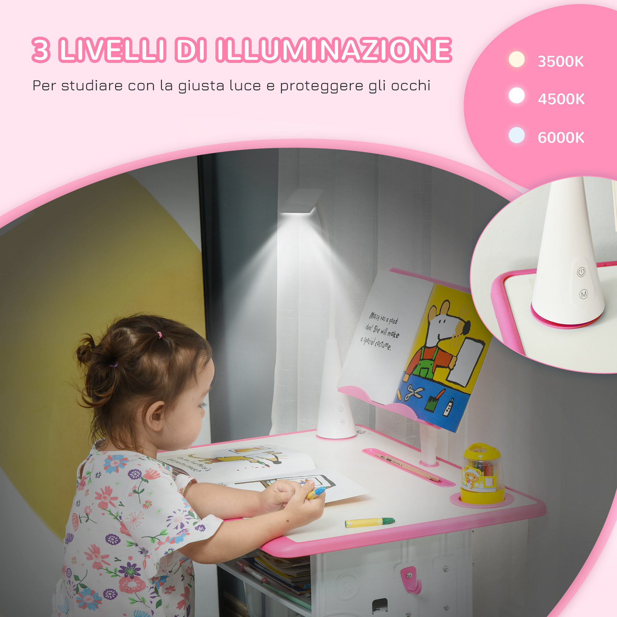 Set Scrivania e Sedia per Bambini 6-12 Anni ad Altezza Regolabili, Banco Scuola con Lampada, Cassetto, Gancio, Portapenne e Leggio, Set Banco con Sedia per Bambini in Acciaio e MDF, Rosa