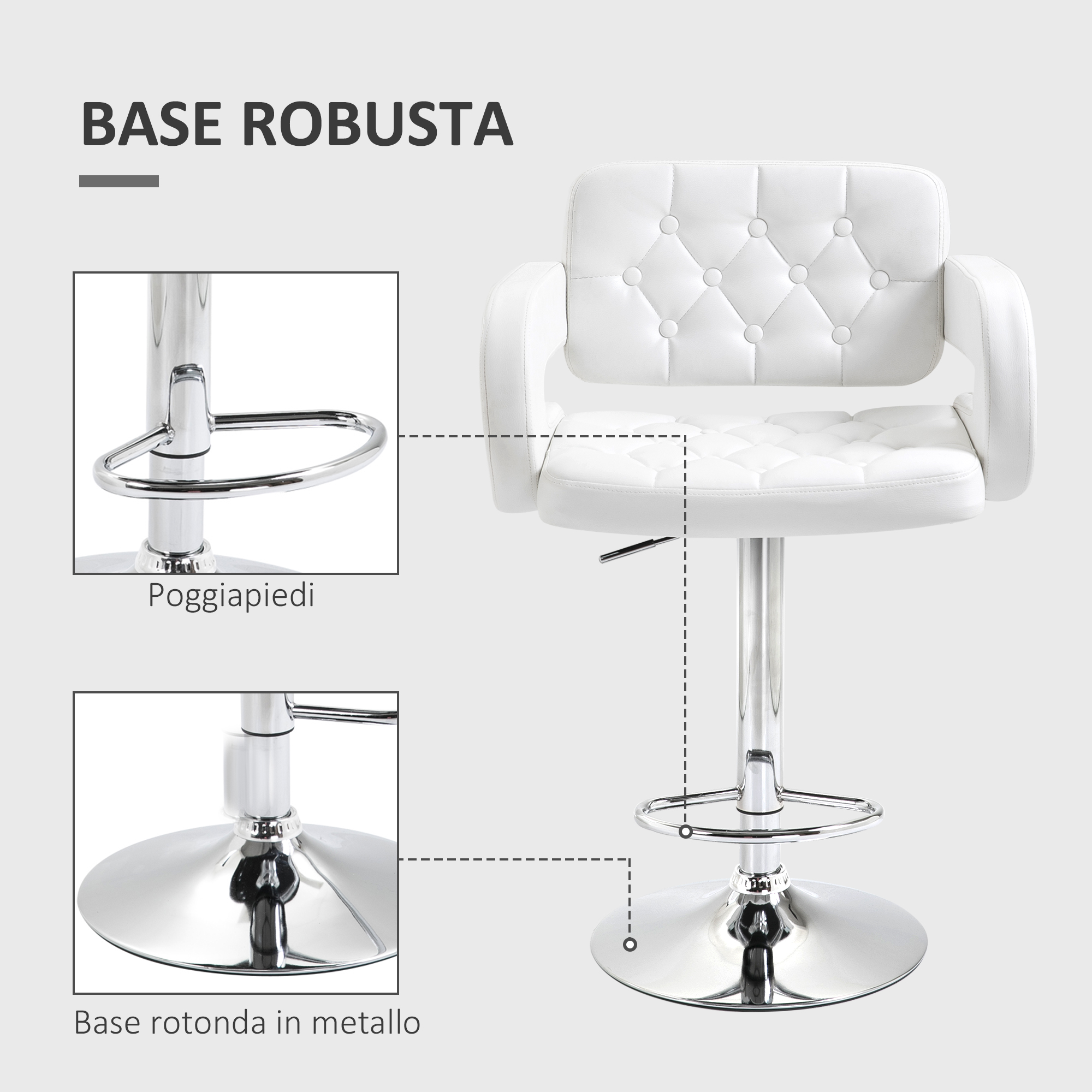 Gusta il tuo aperitivo senza rinunciare alla comodità, con questo sgabello da bar [ITALFROM HOME DESIGN], La seduta è progettata per aiutarti a mantenere una postura corretta, anche nei momenti di relax: ha due ampi braccioli, uno schienale imbottito e un pratico poggiapiedi, La struttura dello sgabello da cucina ha un’ampia base in metallo, per garantirti la massima stabilità, è regolabile in altezza e girevole,