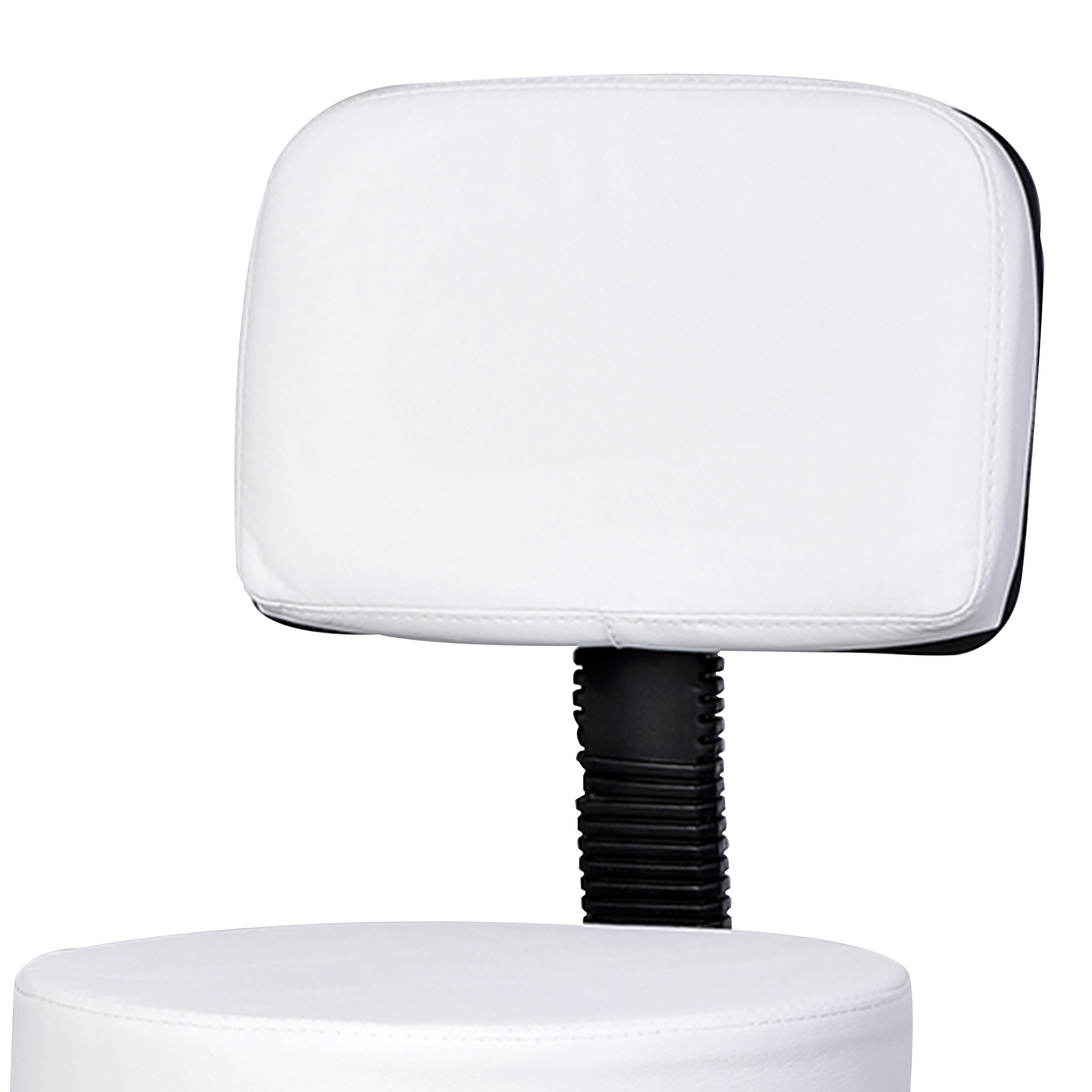 Sgabello Girevole con Schienale, Altezza Regolabile e 5 Ruote in pelle PU Bianca per Casa o Negozio