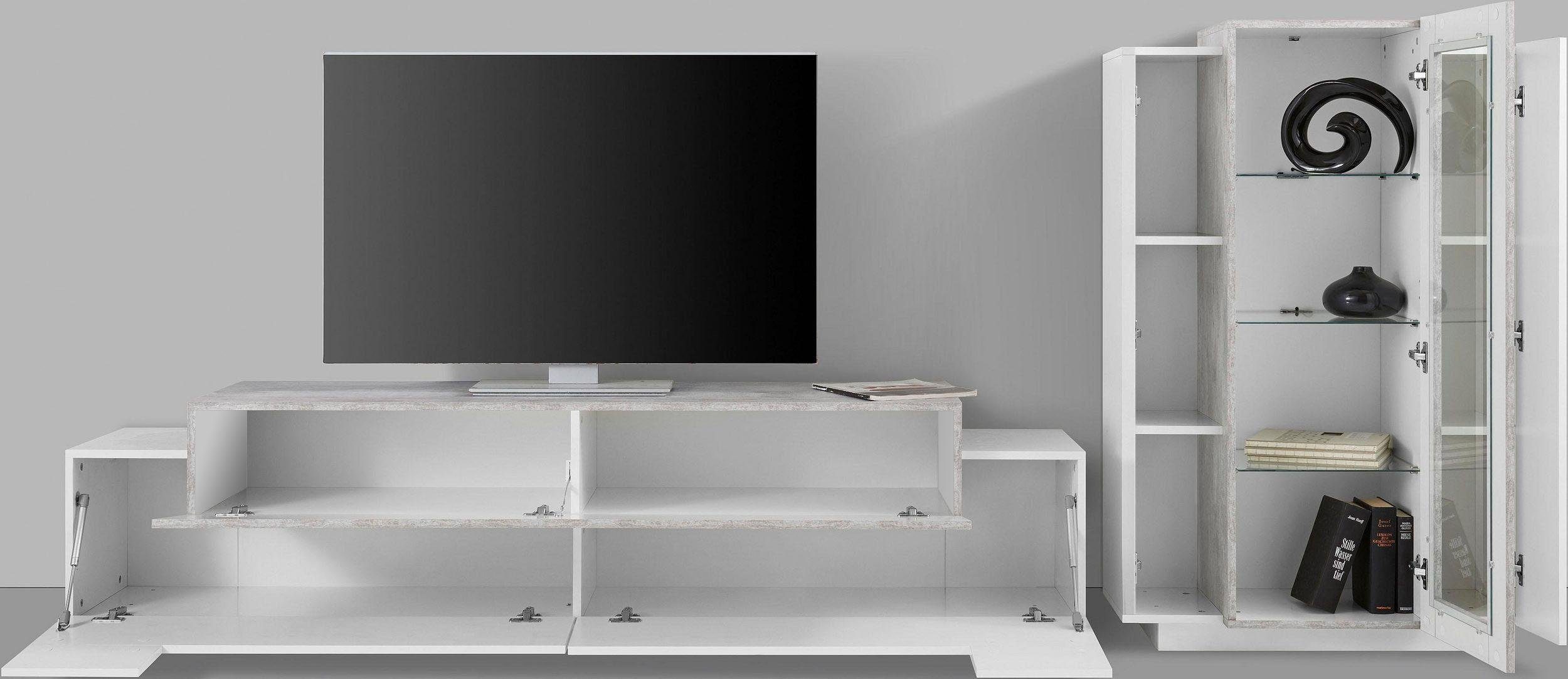 Soggiorno CORO con porta TV + vetrina Bianco laccato lucido / Cemento