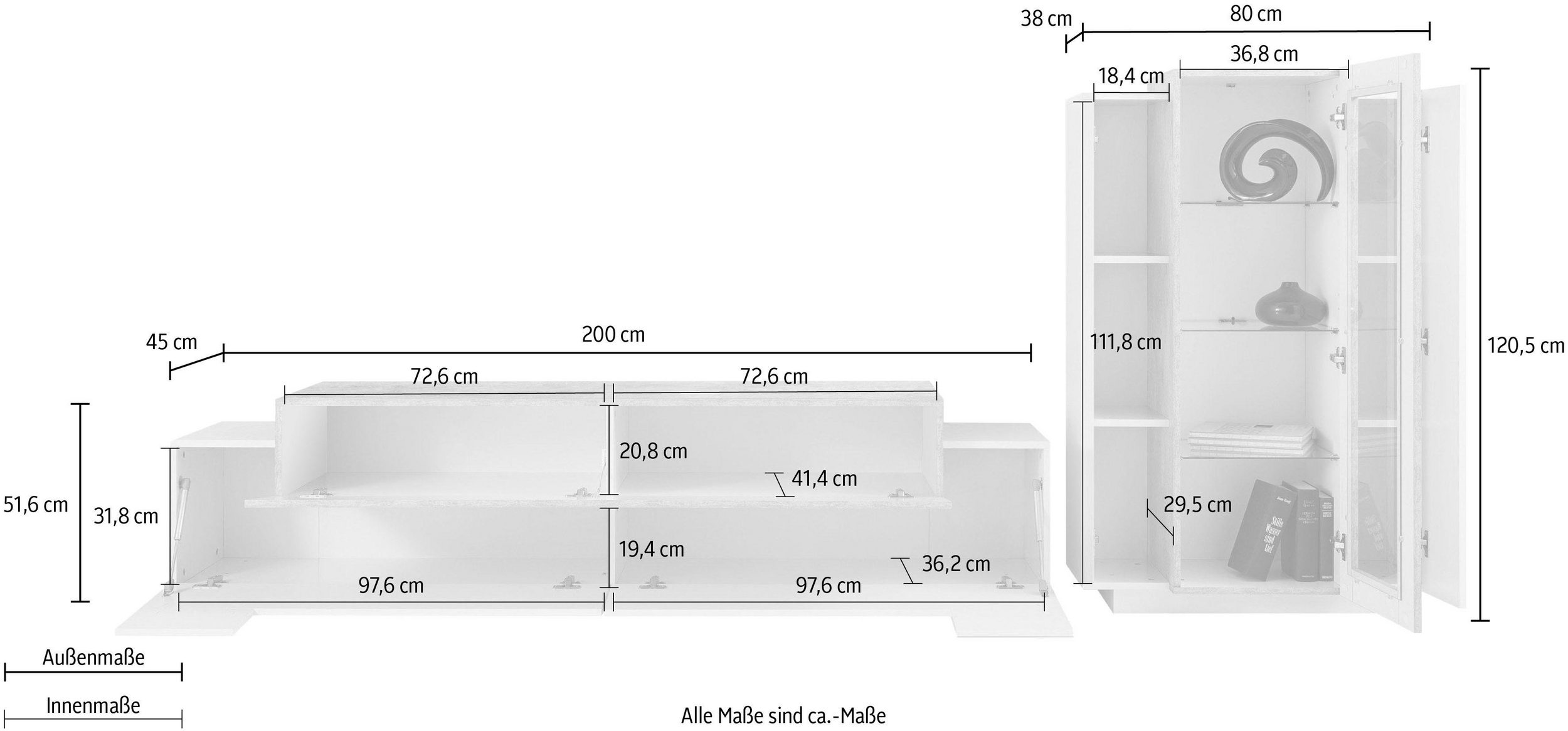 Recensisci per primo “Soggiorno CORO con porta TV + vetrina Bianco laccato lucido / Cemento” Annulla risposta