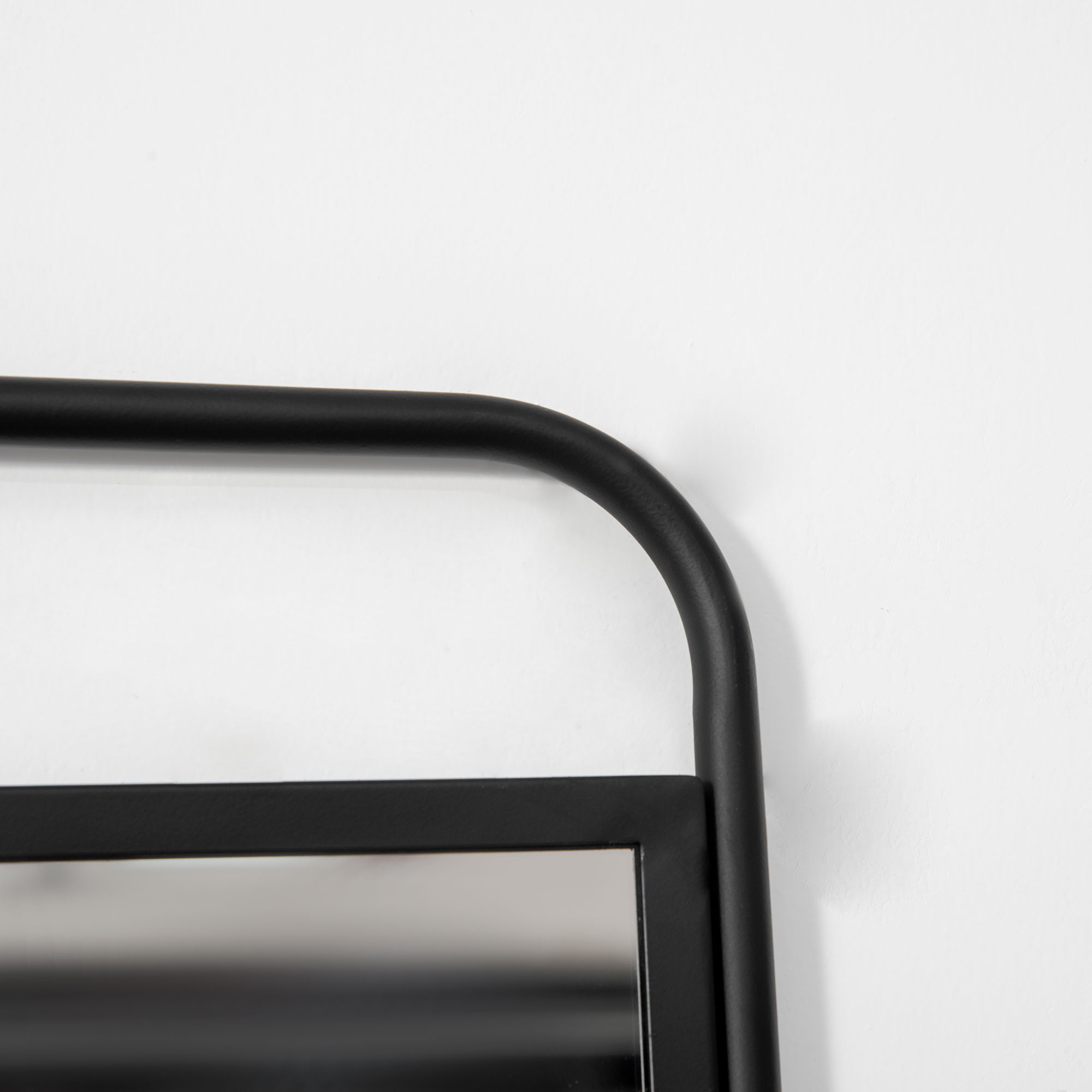 Specchio da Parete con Mensola Inferiore e Struttura in Metallo, 36,2x12x71,7cm, Nero