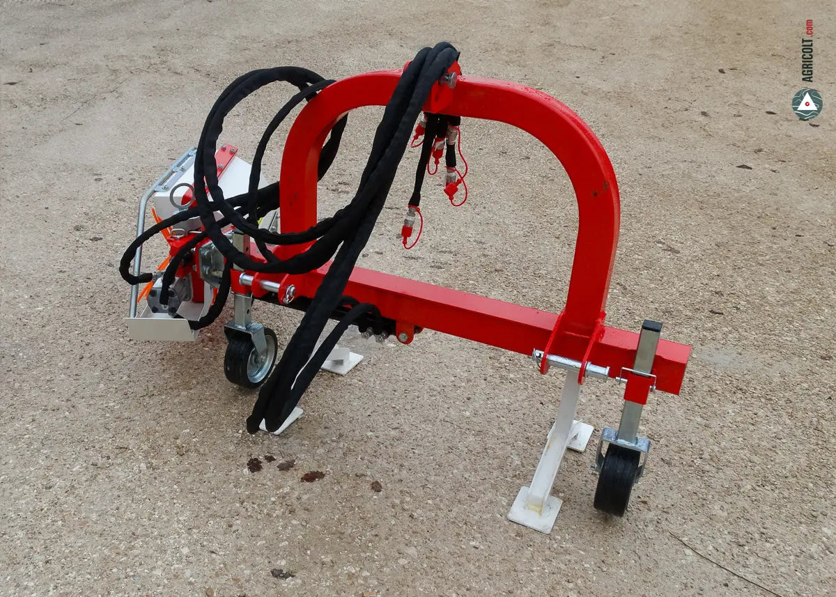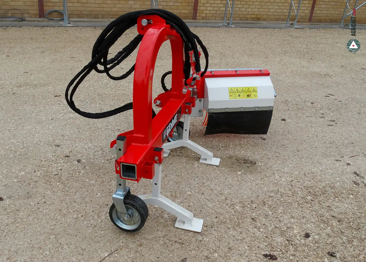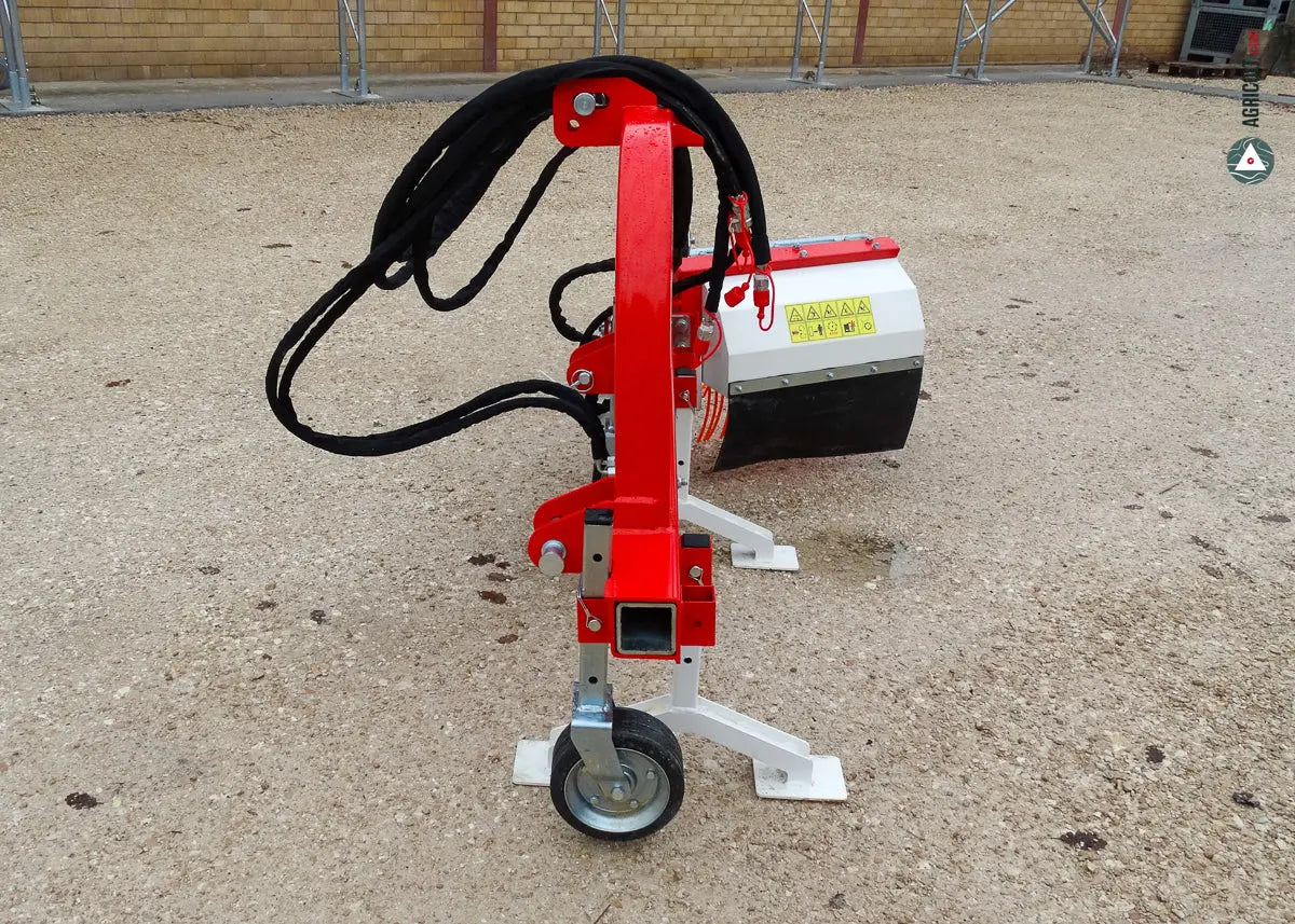 Il telaio della spollonatrice offre uno spostamento laterale con pistone idraulico, e una testata con antiurto meccanico regolabile, assicurando una lavorazione precisa sia su terreni inclinati che pianeggianti.