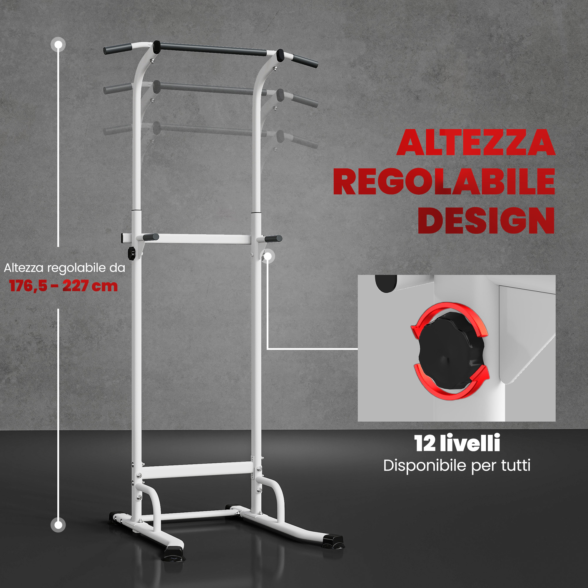 Stazione Fitness con Barre per Dip e Trazioni, Altezza Regolabile 176,5-227 cm e Capacità 120 kg, Bianco