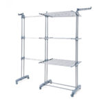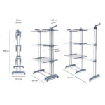 Uno stendibiancheria verticale portatile resistente, stabile e versatile che si adatta al tipo e alla quantità di capi grazie al design pieghevole ed estensibile. Dispone di 3 livelli di altezza, 6 ali pieghevoli e 2 supporti per appendiabiti. Supporta 45 kg. Si monta e si sposta facilmente.