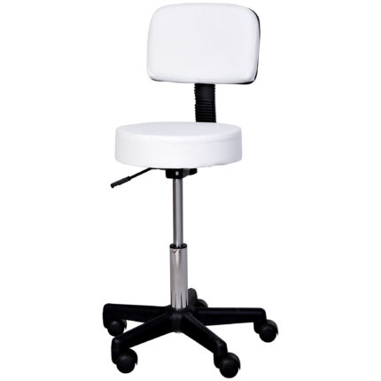 Sgabello Girevole con Schienale, Altezza Regolabile e 5 Ruote in pelle PU Bianca per Casa o Negozio