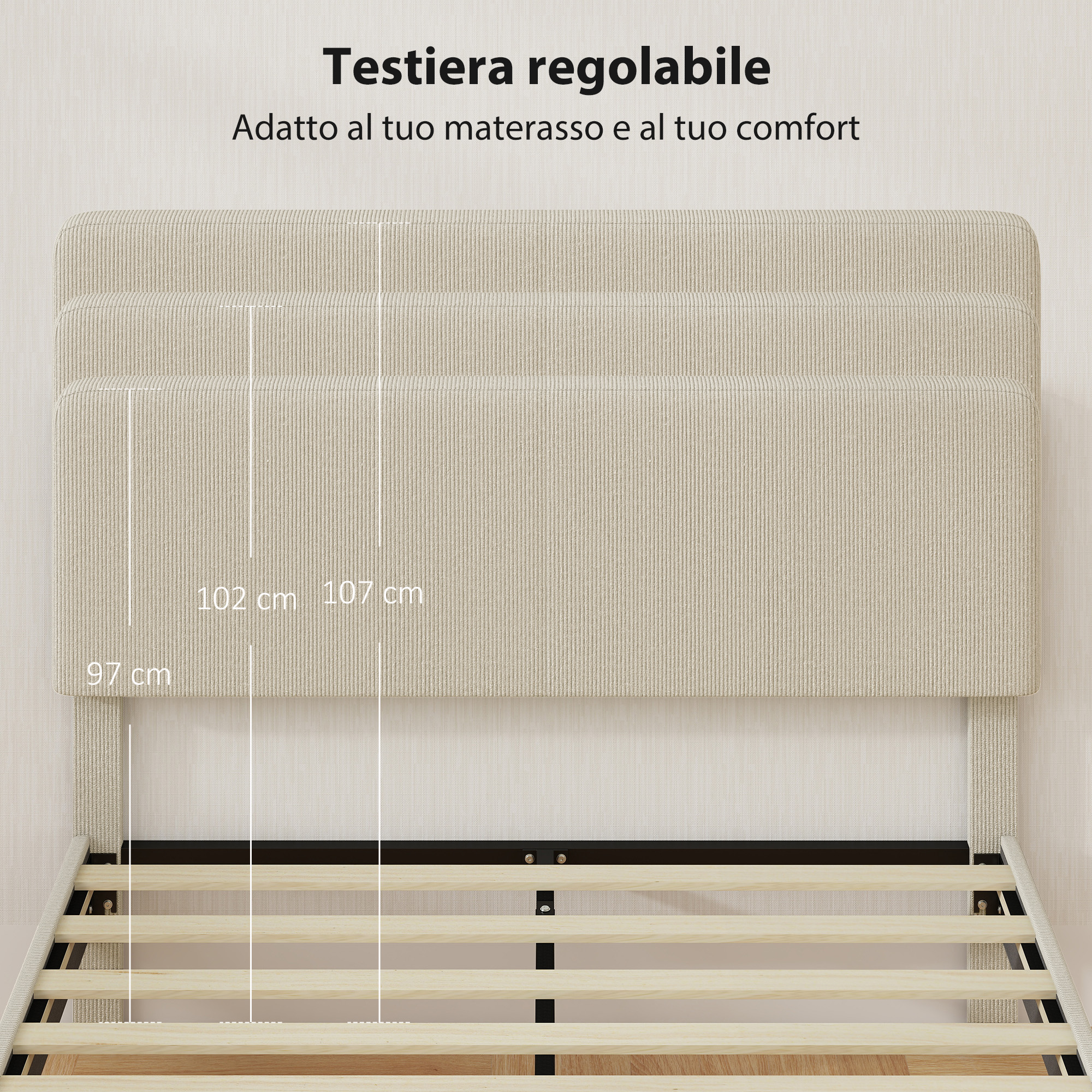 • • Altezza della testiera regolabile: 97 cm/102 cm/107 cm