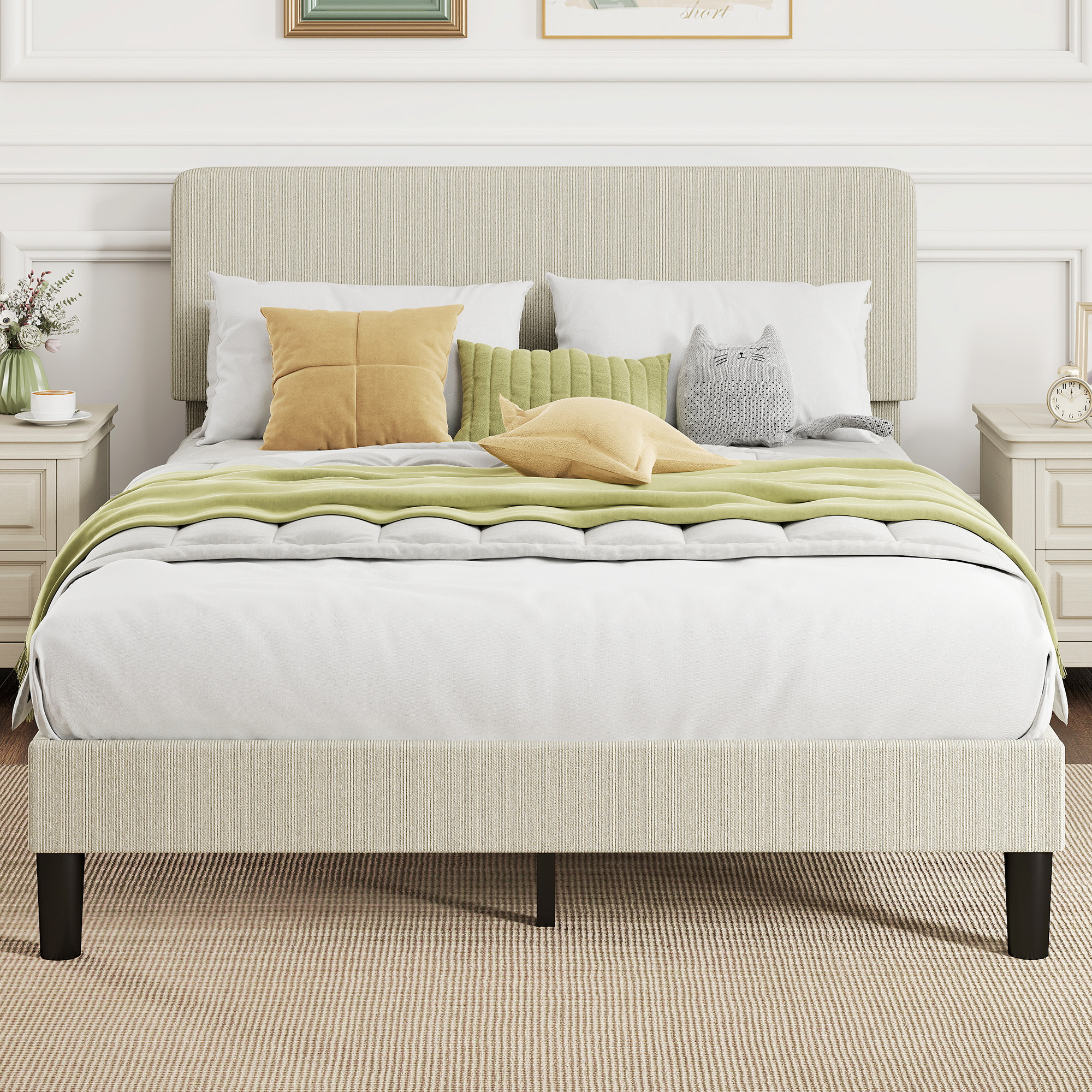 • • Il rivestimento in velluto a coste aggiunge un calore accogliente a qualsiasi arredamento della camera da letto