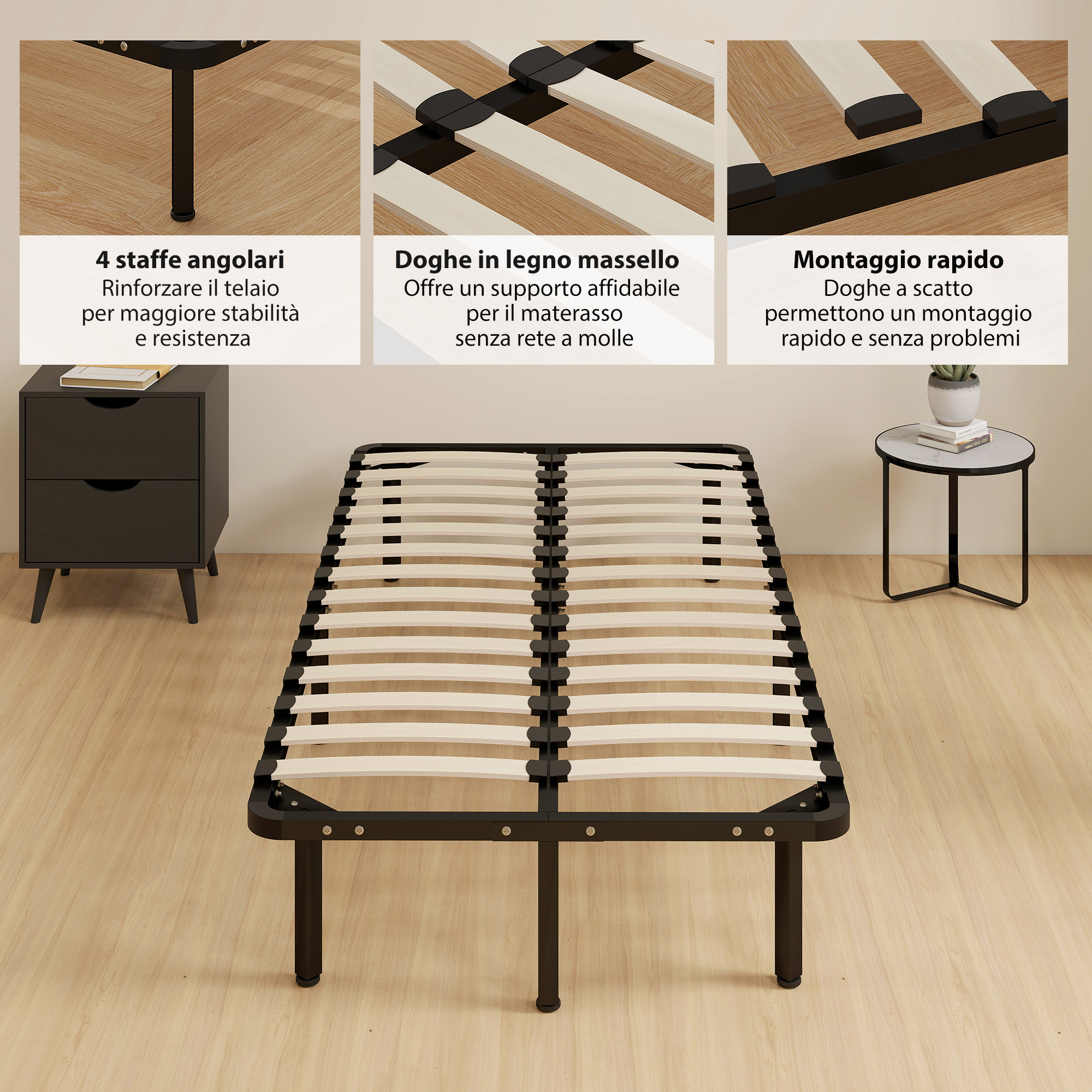 Struttura Letto Industriale a 28 Doghe con Spazio Contenitore, in Legno e Acciaio, 190x90x31 cm, Nero e Legno