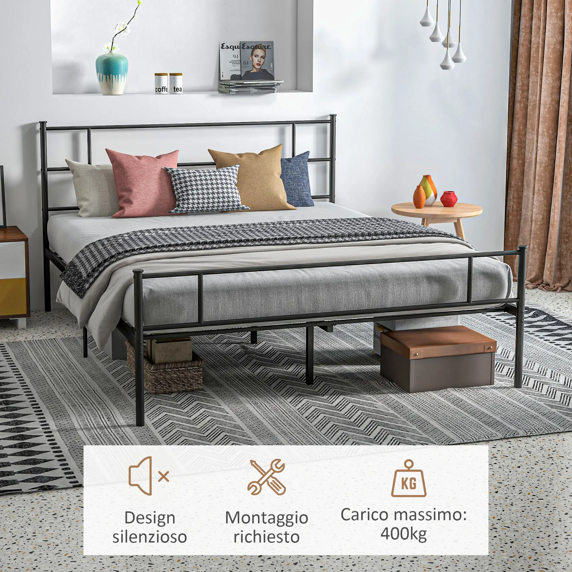 Struttura Letto Matrimoniale in Acciaio 160x2cm con Doghe, Testiera e Pediera – Nero