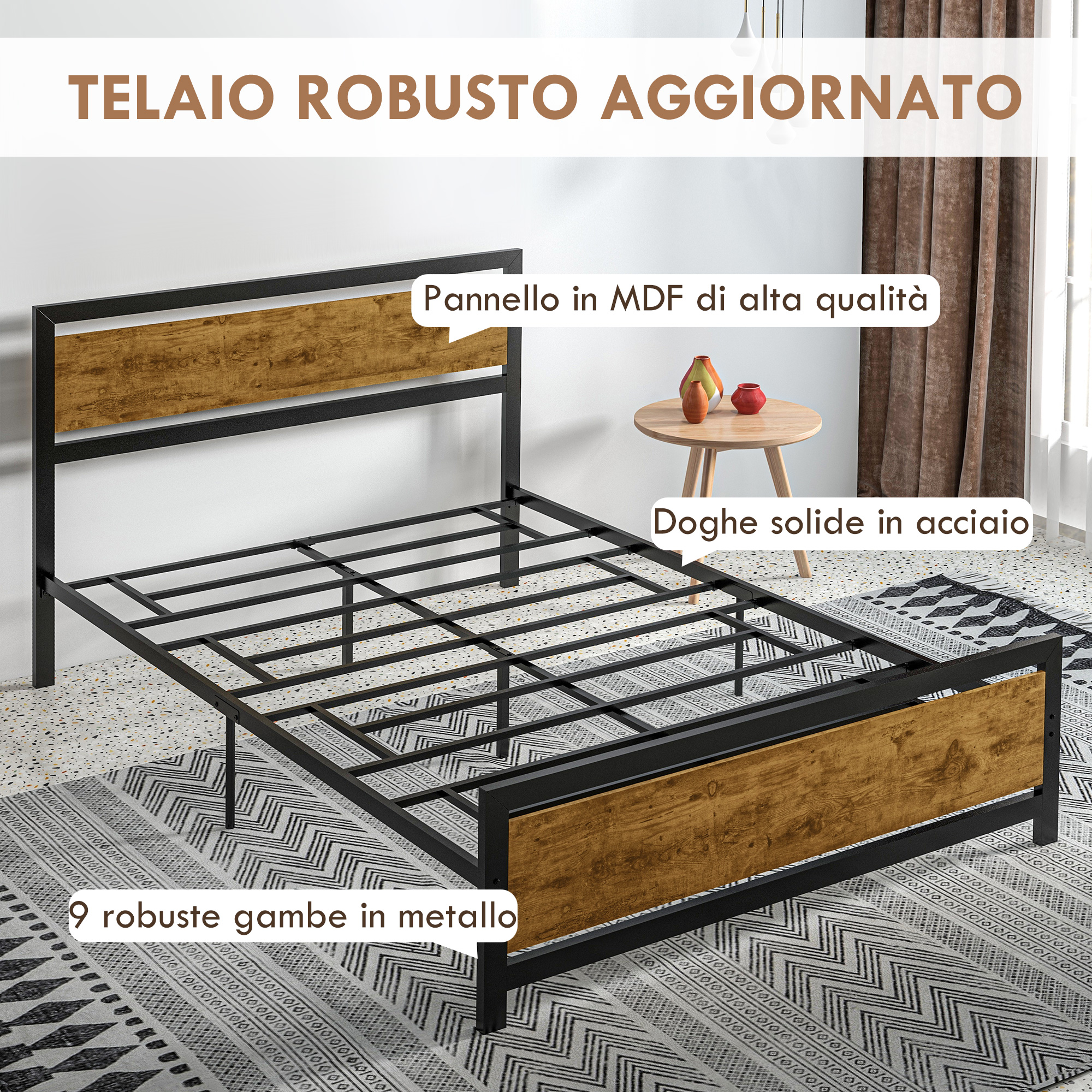 Struttura Letto Una Piazza e Mezza in Legno e Acciaio con Doghe in Stile Industriale, 140x2cm
