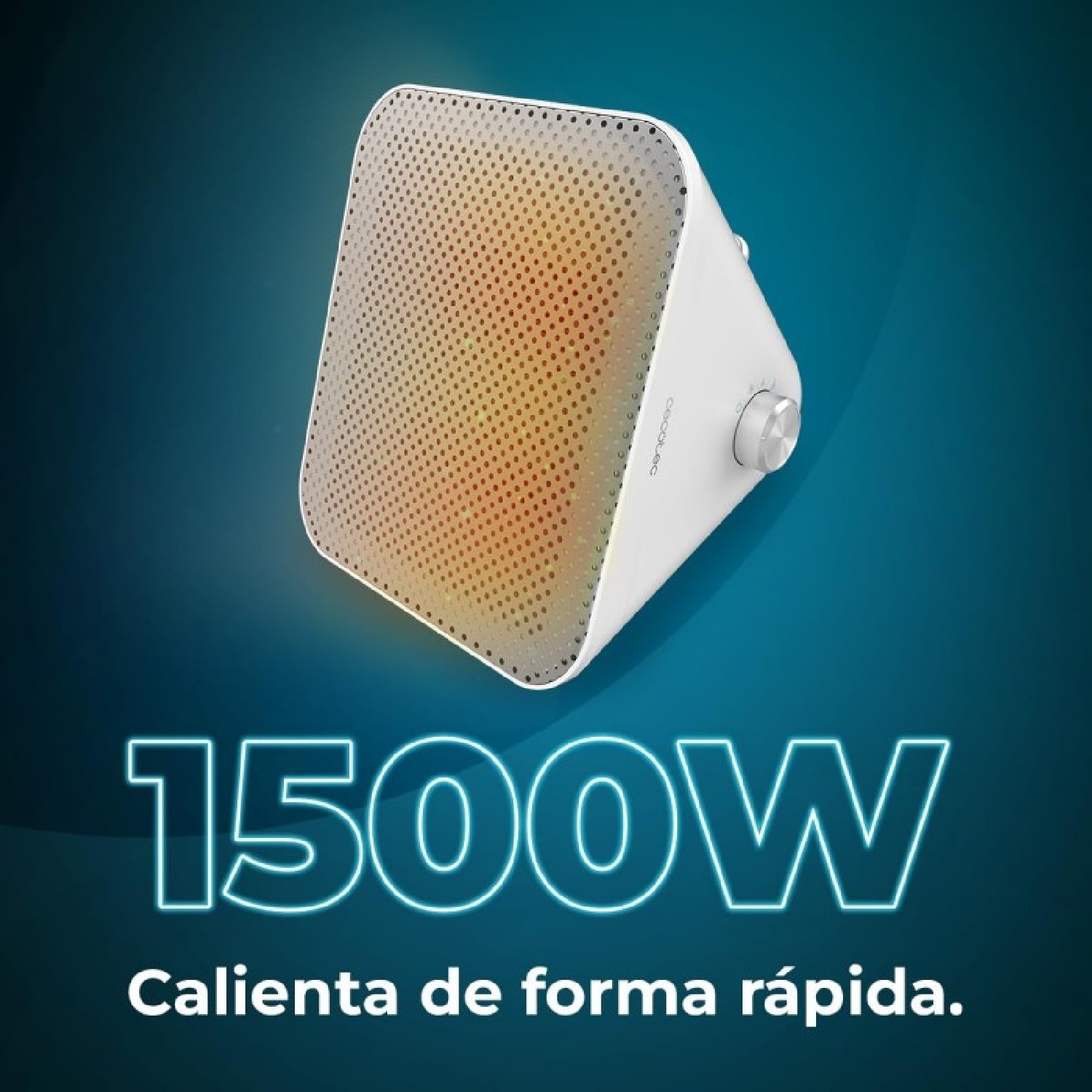 Stufa da tavolo con elemento in ceramica con potenza di 1500 W, termostato regolabile e 3 modalità di funzionamento.