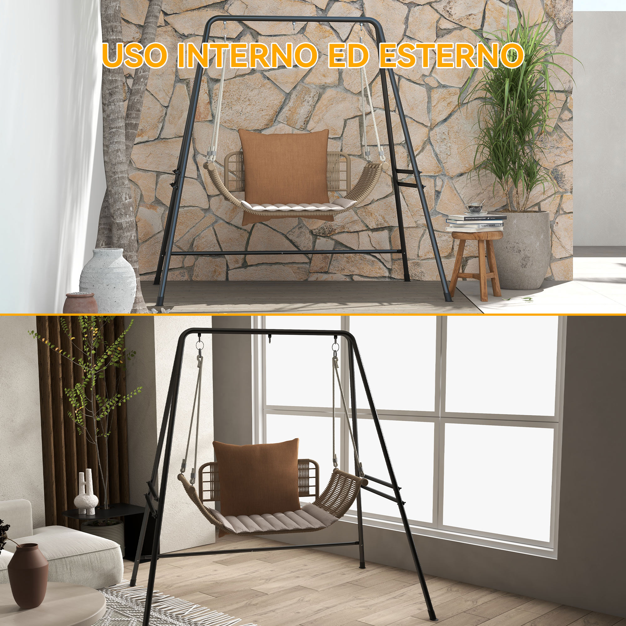 - • Supporto amaca dal telaio in metallo verniciato a polvere, robusto e resistente, Gambe a forma di A per garantire il giusto equilibrio