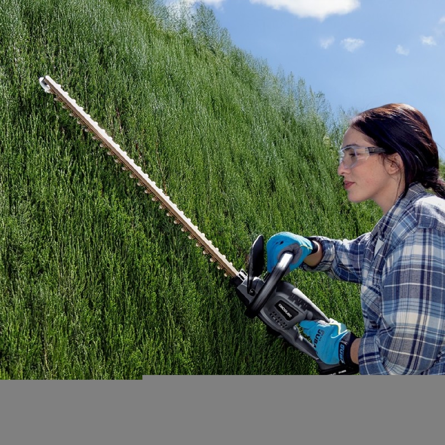 Tagliasiepi con lunghezza di taglio fino a 61 cm. Batteria 21 V. Motore brushless, senza spazzole. Lame in titanio. Rami fino a 16 mm.