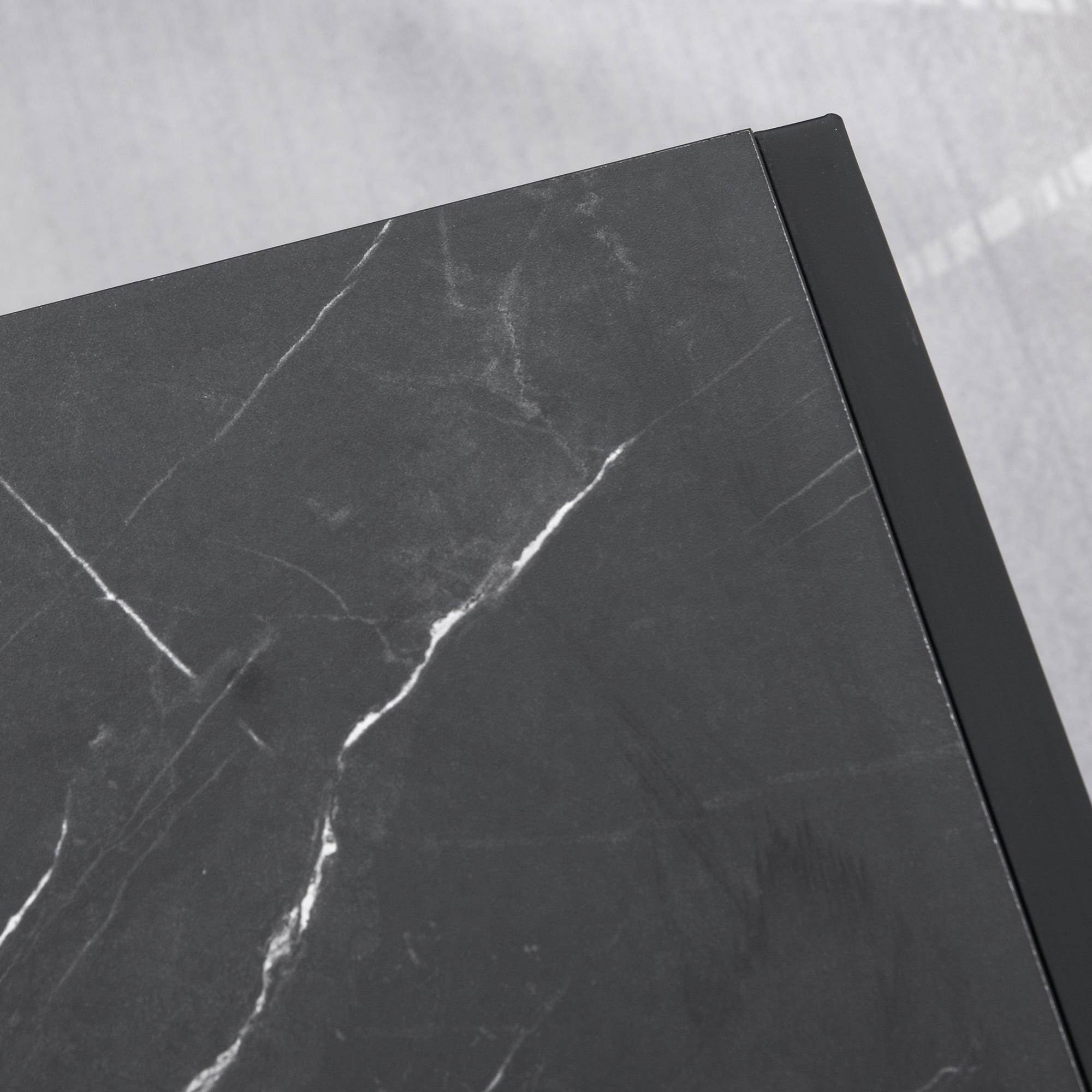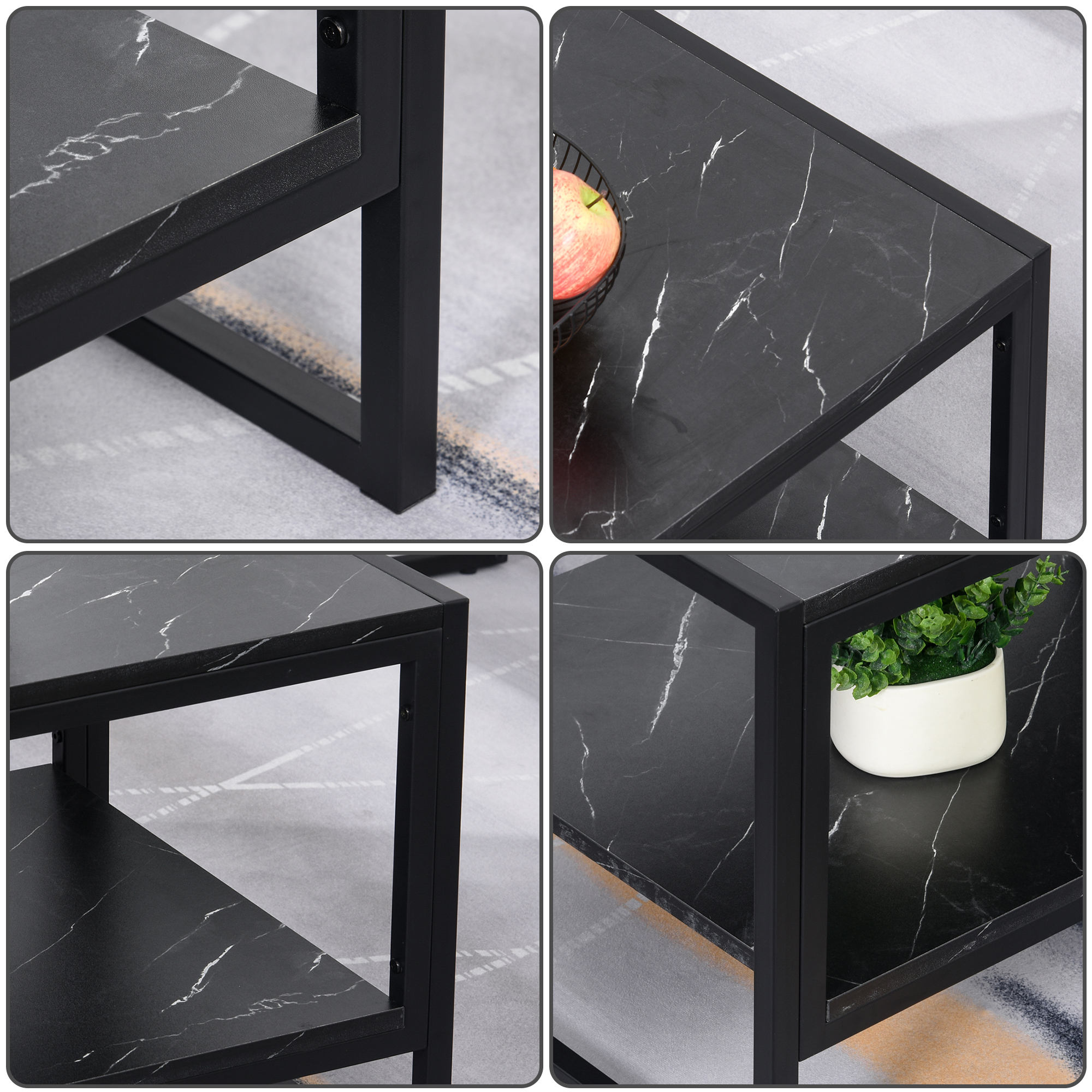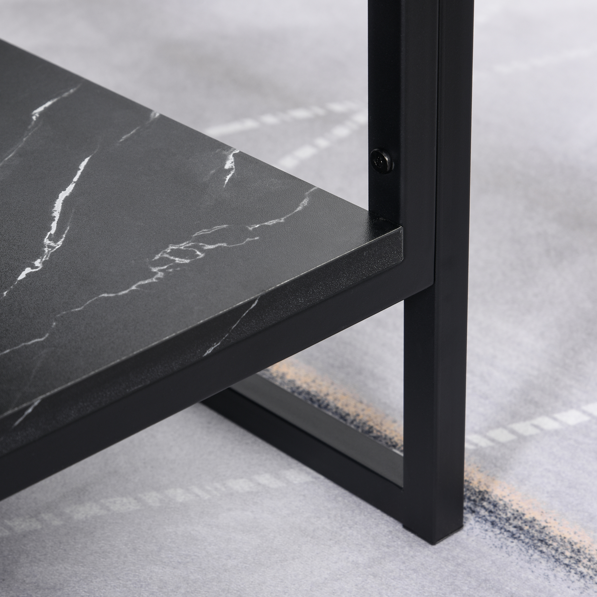 Tavolino da Caffè Nero, Tavolino Effetto Marmo con Ripiano Inferiore, da Soggiorno o Ufficio, Design Moderno, Telaio in Acciaio, 106x50x45cm, Nero