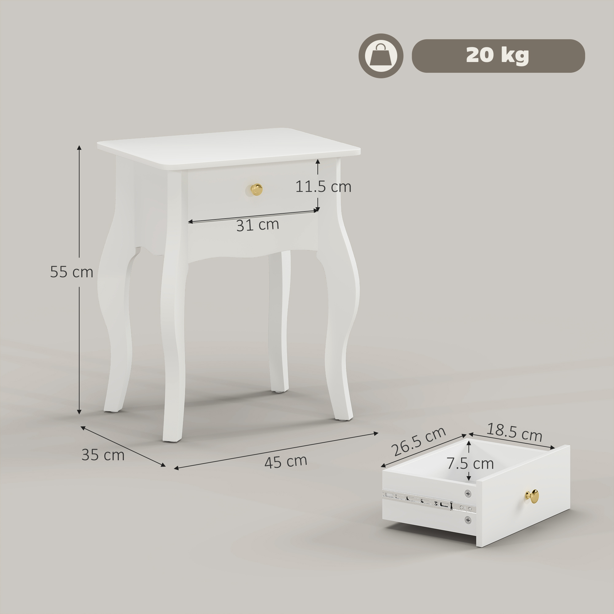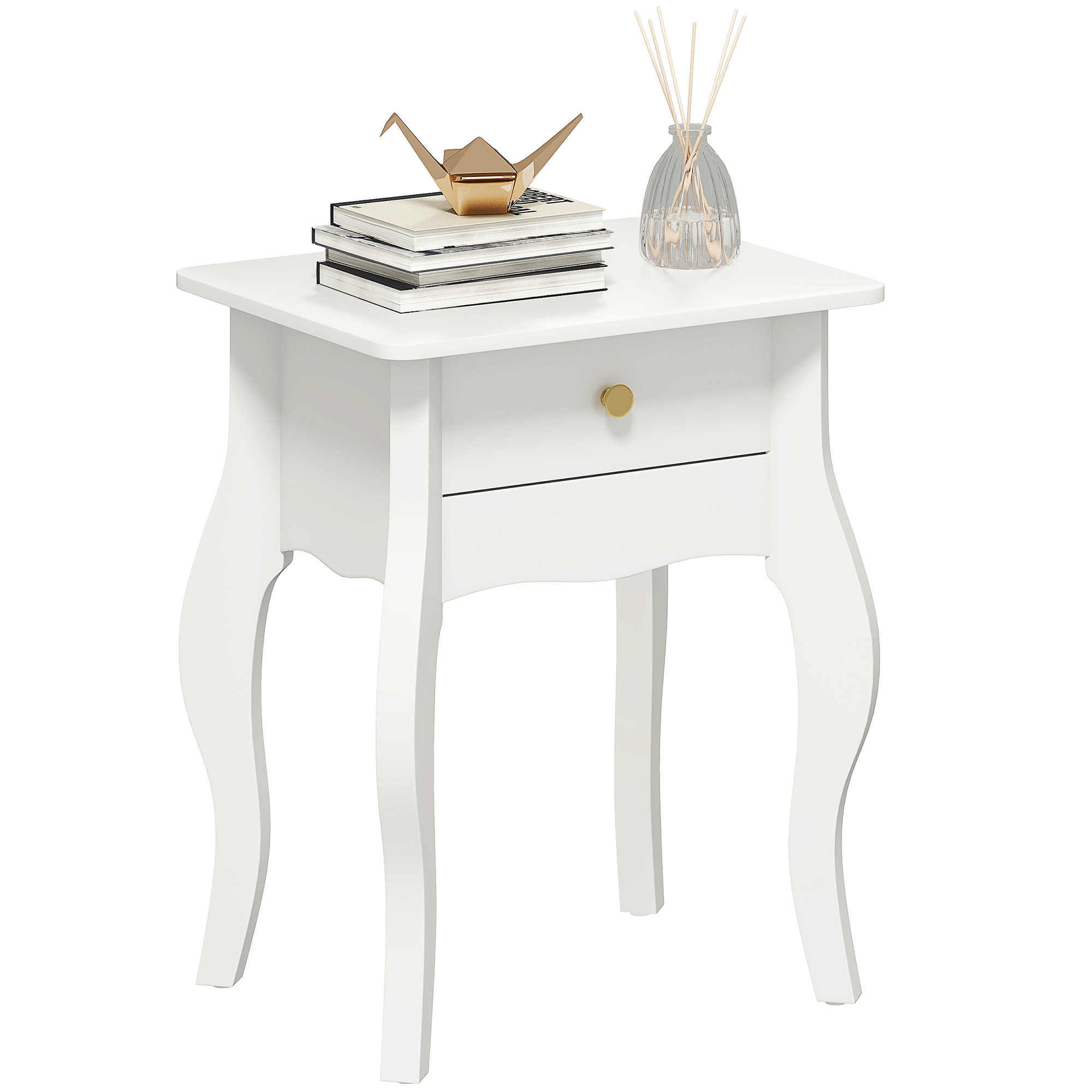 Tavolino da Salotto con Cassetto in Stile Francese con Gambe Curve, 45x35x55 cm, Bianco