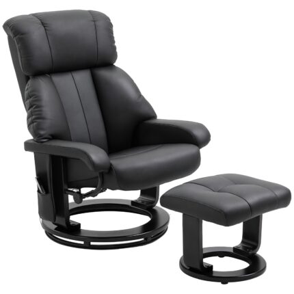 Poltrona Relax Reclinabile e Massaggiante con Pouf Poggiapiedi e Telecomando, 76x80x102 cm Nero