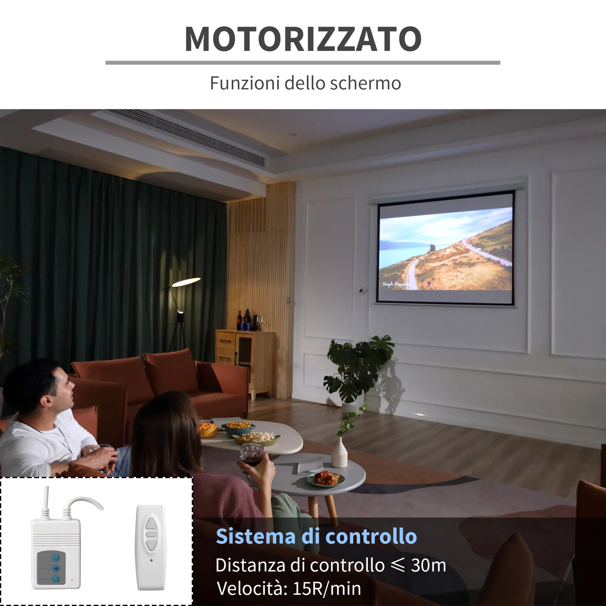 Telo Proiettore 84″ Formato 4:3 con Telecomando, in Tessuto Plastico e Metallo, 171×130 cm, Bianco