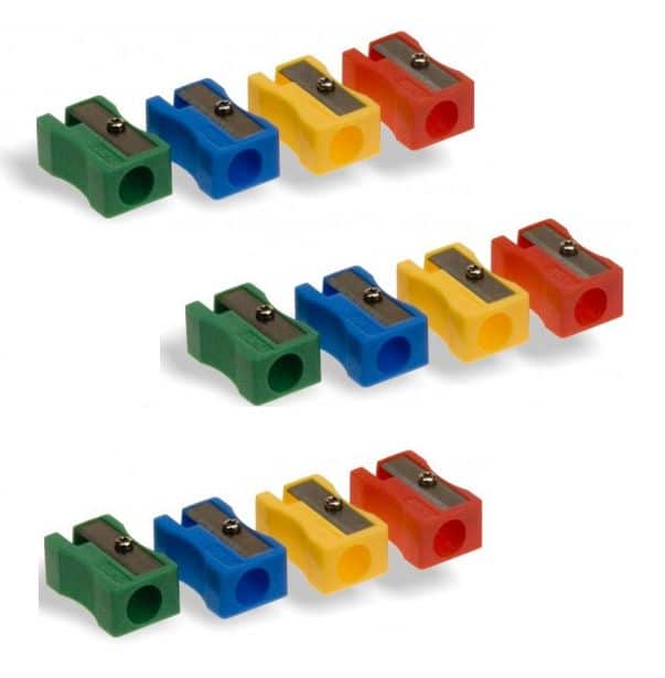 Temperino a 1 foro in plastica, colori assortiti.Confezione 60 pezzi.