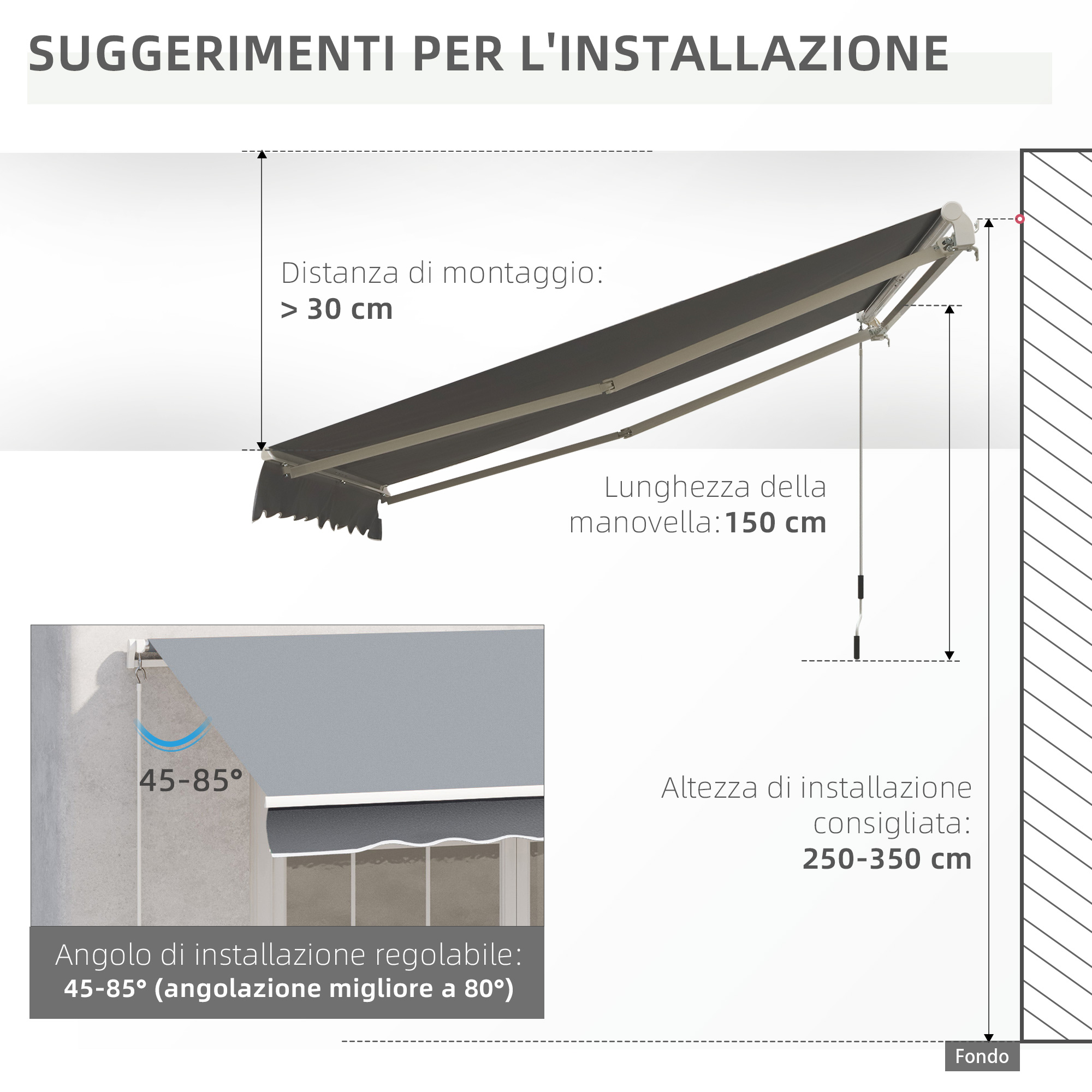 Tenda da Sole 3×2.5 m Avvolgibile per Porte e Finestre, in Alluminio e Poliestere Anti-UV, Grigio