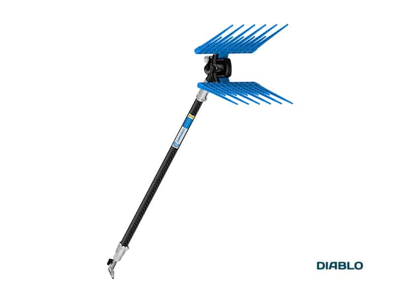 L’aria di scarico viene indirizzata sui componenti in movimento per aiutare il raffreddamento e la lubrificazione, mentre una copertura li protegge dall’usura. In generale, si tratta di abbacchiatori che richiedono un basso consumo di aria. Il modello DIABLO 1800, grazie al sistema “short cut”, ossia la corsa ridotta di pistone e rastrelli, ha una superiore velocità di battuta (1800 a 6 bar).
