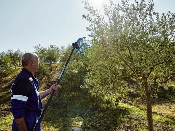 L’abbacchiatore pneumatico TUONO EVO non reca danni alla pianta grazie alla perfetta scorrevolezza tra i rami. I rastrelli in tecnopolimero hanno i famosi rebbi a forma di diapason, brevettati da Campagnola, che permettono di raccogliere agevolmente ogni tipo di oliva, di qualsiasi dimensione e a qualsiasi grado di maturazione.