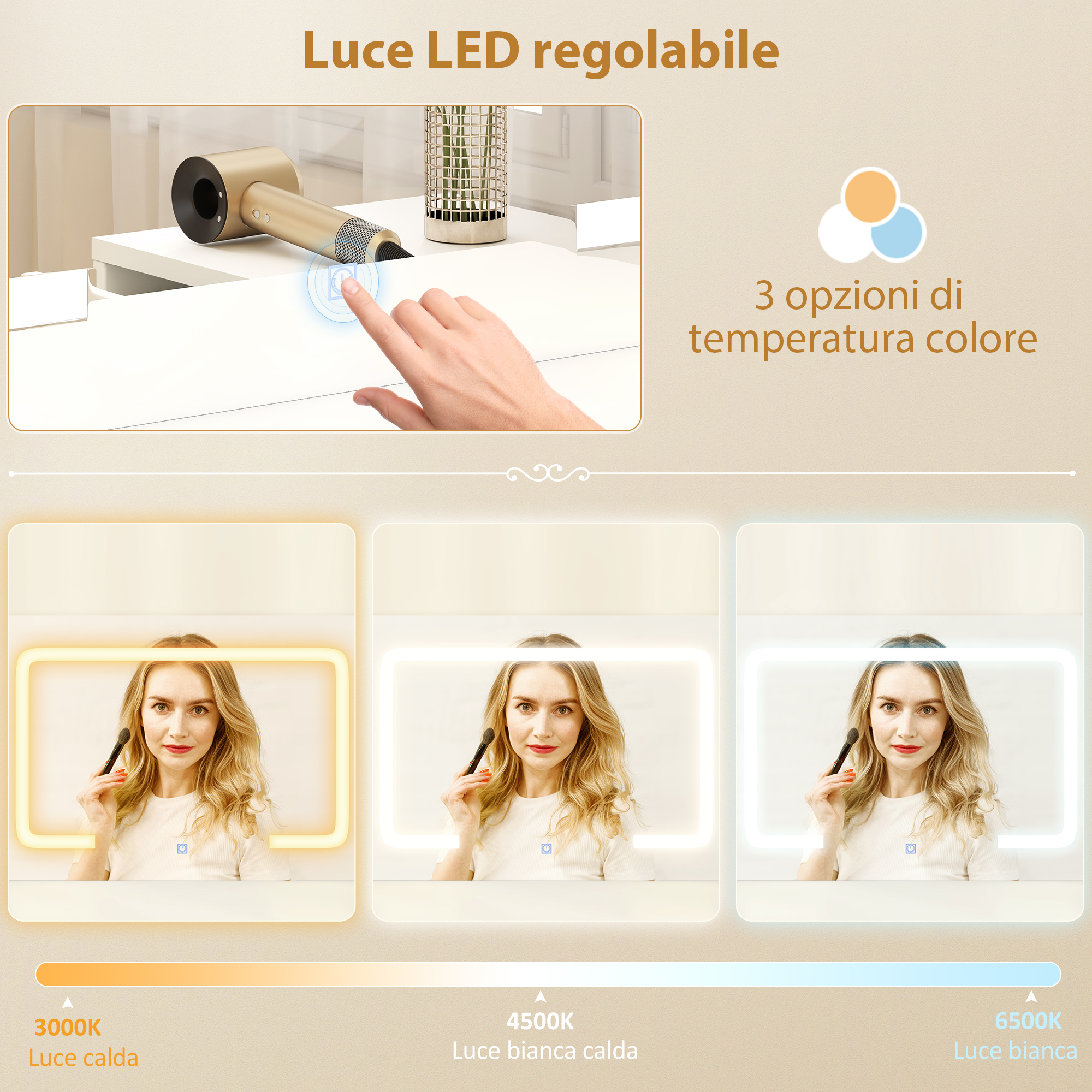- • Temperatura colore luce LED: 65K/45K/30K