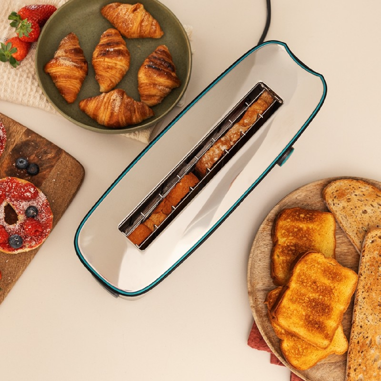 Tostapane in acciaio con 1 fessura larga lunga e capacità da 2 toast.