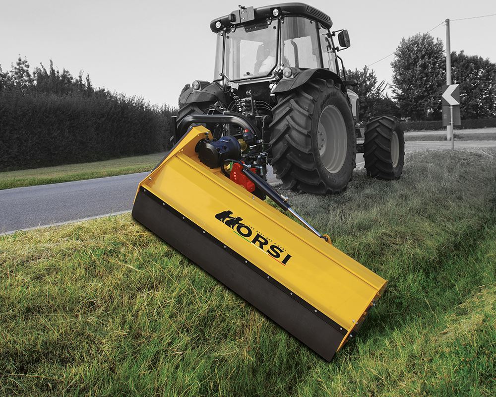 Trincia Competition GS laterale con Grande Sbraccio idonea per la pulizia di banchine stradali, fossati, argini, giardini e aree verdi. Dotata di inclinazione idraulica con raggiungimento della posizione verticale fino a 90° per la potatura e trinciatura di siepi. Consigliata per lo sfalcio di erba, sarmenti e ramaglia fino a 6cm di diametro. Adatta a lavorare sia posteriorermente che lateralmente al trattore. L’apparato trinciante è costituito da un doppio telaio interno costruito totalmente in HARDOX® (acciaio resistente all’usura e antiabrasivo). Doppia posizione del rullo posteriore di appoggio: 1) autopulente per consentire lo scarico del prodotto trinciato posteriormente al rullo. L’assorbimento di potenza del trattore viene così ridotto al minimo con conseguente riduzione dei consumi. 2) posteriore, per trattenere maggiormente il prodotto all’interno dell’apparato trinciante e quindi sminuzzarlo ulteriormente. Le 2 file di controcoltelli installate all’interno garantiscono in entrambe le 2 posizioni del rullo di appoggio un’ottima qualità di trinciatura.