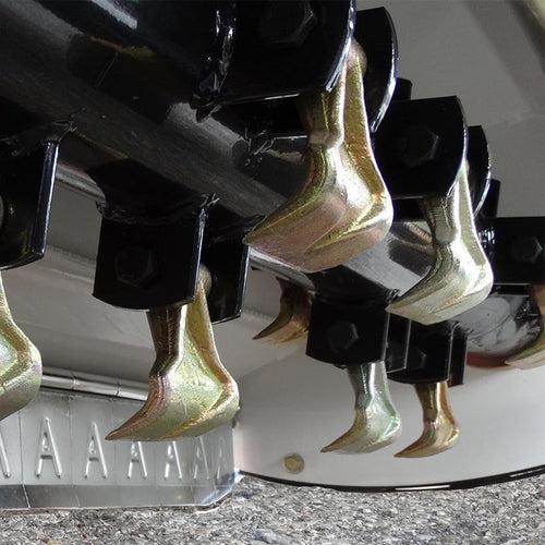 Dalla dimensione del rotore, ne verrà la possibilità di poter sopportare mazze di un peso maggiore e così poter triturare, conseguentemente, residui di potatura e legna fino a 3cm. La dimensione diametrale del rotore misura 110 mm, con uno spessore della lamiera tubolare di 8 mm, dimensioni che fanno di questa trincia argini una delle punte di diamante della Giemme Machinery.